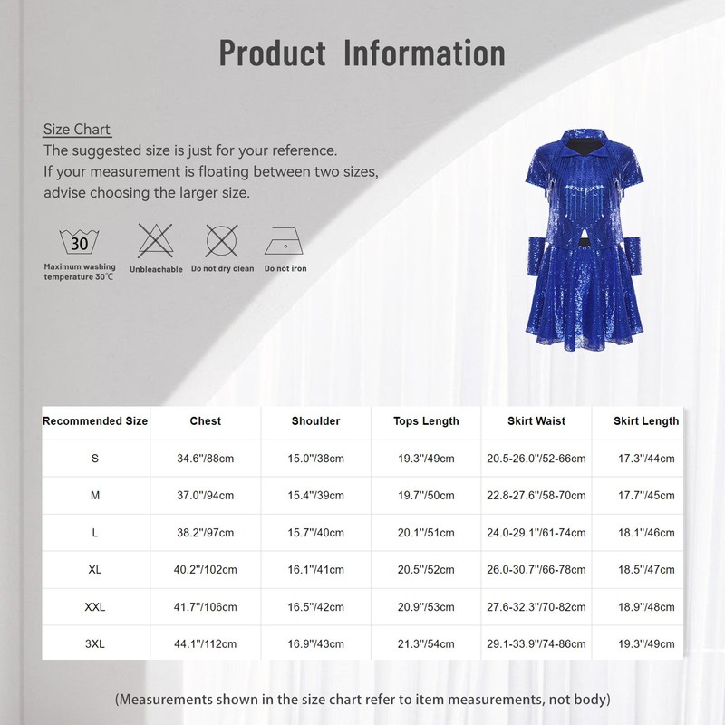 Crafted from a blend of polyester and sequins, the outfit offers a balance of durability and a dazzling shine, ensuring a long-lasting and eye-catching look.