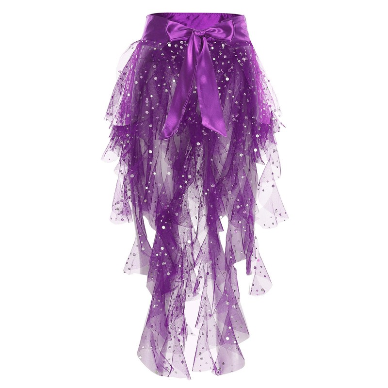 Womens Dancewear Sequined Hip Scarf Performance Skirt Tulle Costume Tiered Lady