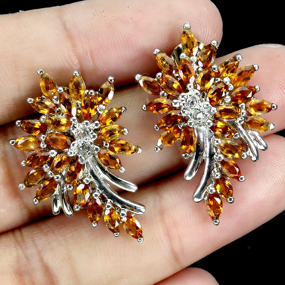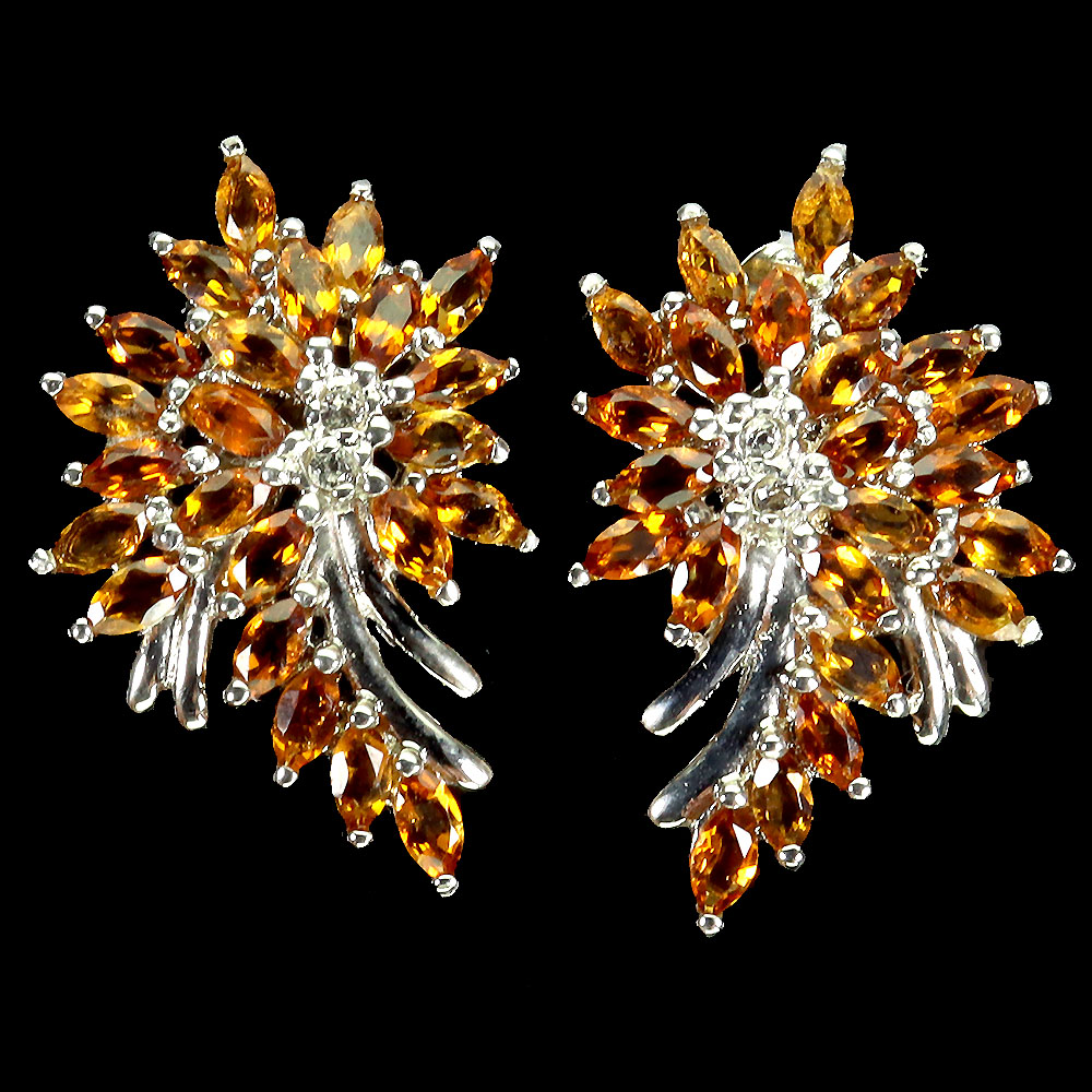 925 Sterling Silver Earrings Marquise Citrine White Topaz Gemstone Jewelry