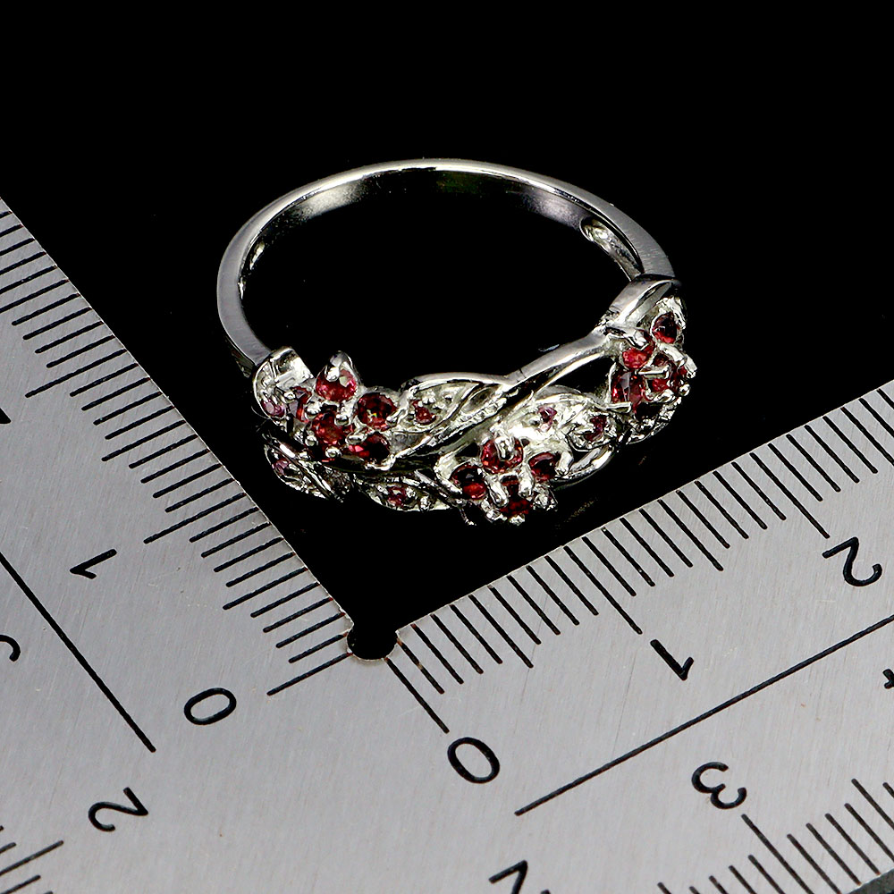 925 Sterling Silver Ring Round Rhodolite Garnet Natural Gemstone Jewelry Size 8