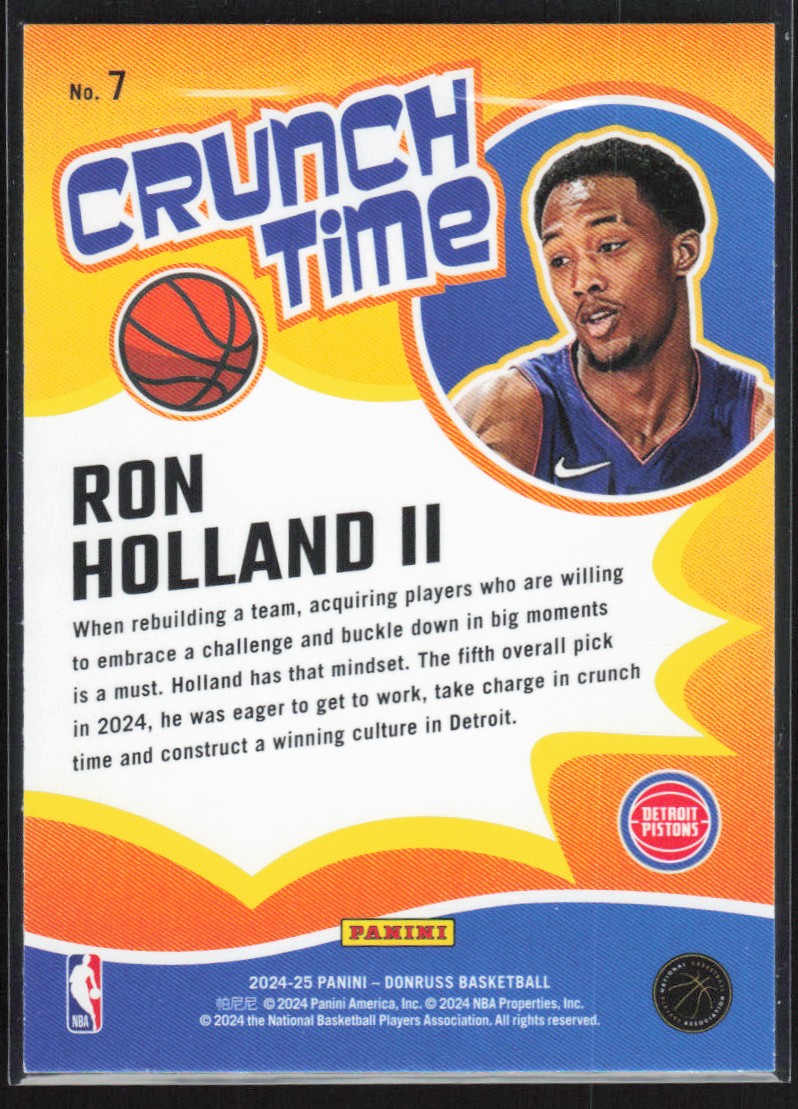 | 2024-25 DONRUSS CRUNCH TIME RON HOLLAND III RC DETROIT PISTONS #7 1 |