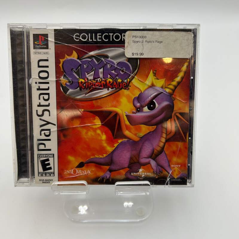 The game "Spyro Ripto's Rage" for the Playstation is a classic platformer that many gamers cherish. This listing is for a uséd copy that comes complete with its original case, box, inserts, and manual. Both the disc and the case show light scratches, which are minor and unobtrusive, ensuring that they don't affect playability. The game has been tested and confirmed to work great, so you can enjoy the charming adventures of Spyro without any worries.Ideal for gamers looking to relive their childhood or newcomers eager to experience this beloved title, "Spyro Ripto's Rage" offers engaging gameplay and vibrant worlds. As a part of the critically acclaimed Spyro series, it promises hours of entertainment, making it a nice addition to any game collection. With free shipping and a 30-day return policy, purchasing this game is an easy decision!**Policies:** - 30 days free returns, seller pays for return label.