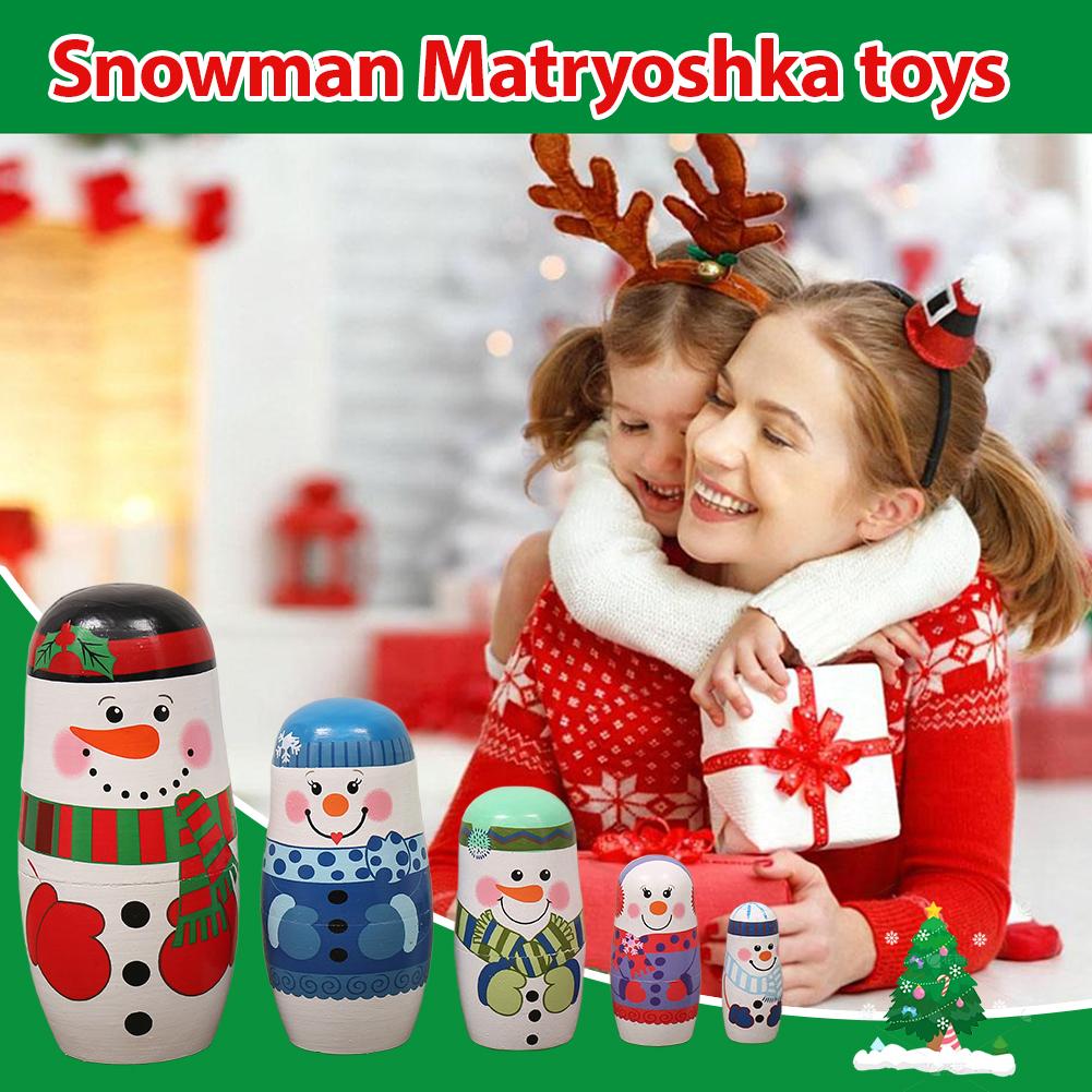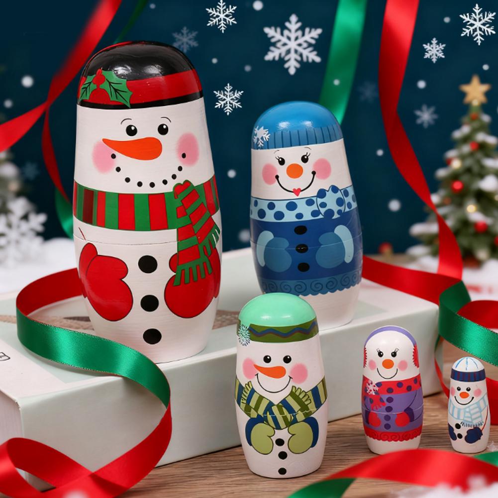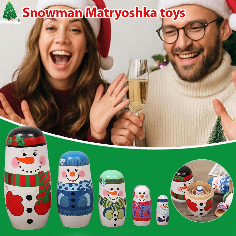 1. [Charming Snowman Design]: Adorn your home with this delightful set of 5 nesting dolls, each uniquely hand-painted with a festive snowman character. Their bright colors and cheerful expressions bring a touch of winter wonder to any space, making them a charming highlight in your seasonal decorations.