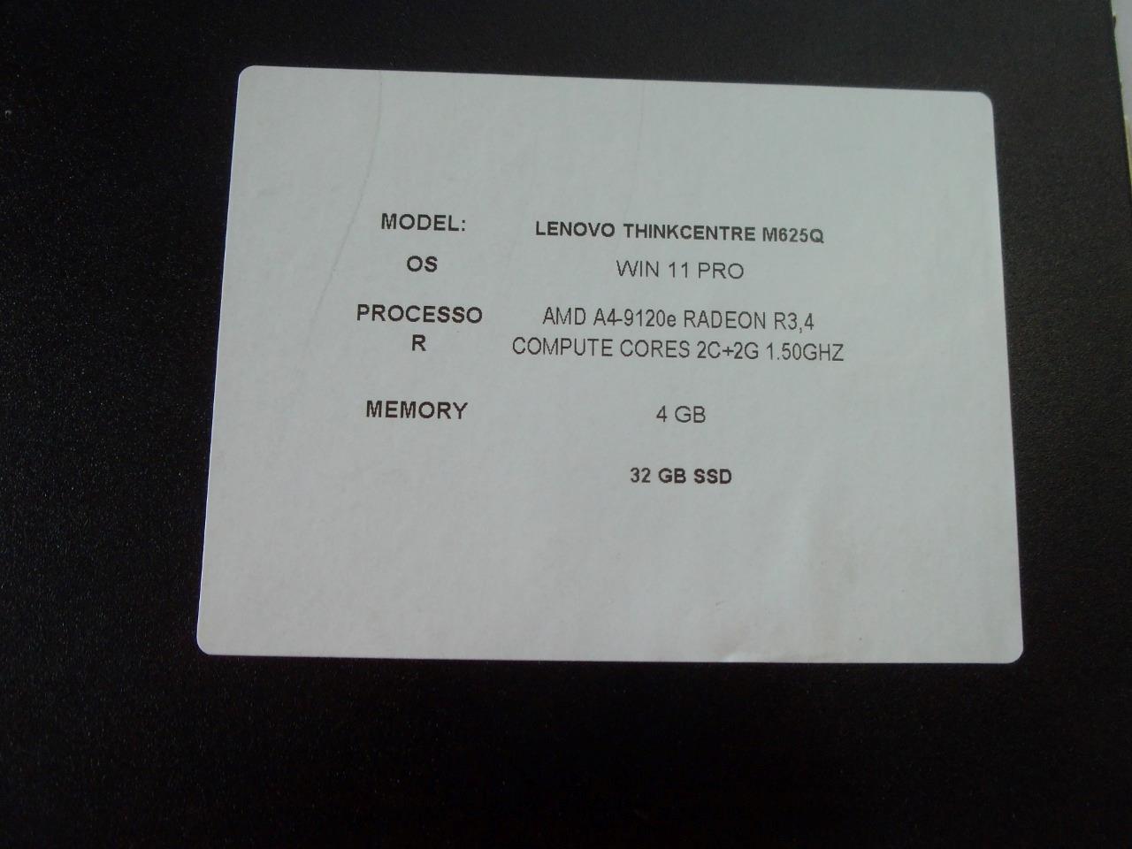 Lenovo ThinkCentre M625q AMD A4-9120e 1.50GHz 4GB 32GB SSD W11 Mini PC (H334)