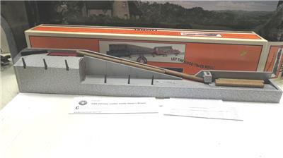 First built in 1948, the 364 Conveyor Lumber Loader is a simple, but fun accessory. For use in conjunction with the Lionel log dump car, the Loader accepts logs at its base. A conveyor belt takes the logs to the top of the Loader. Once there, gravity sends them careening over the edge into a waiting car. An exterior light near the base augments this fun accessory. The 364 Conveyor Lumber Loader is great way to start your own logging empire!