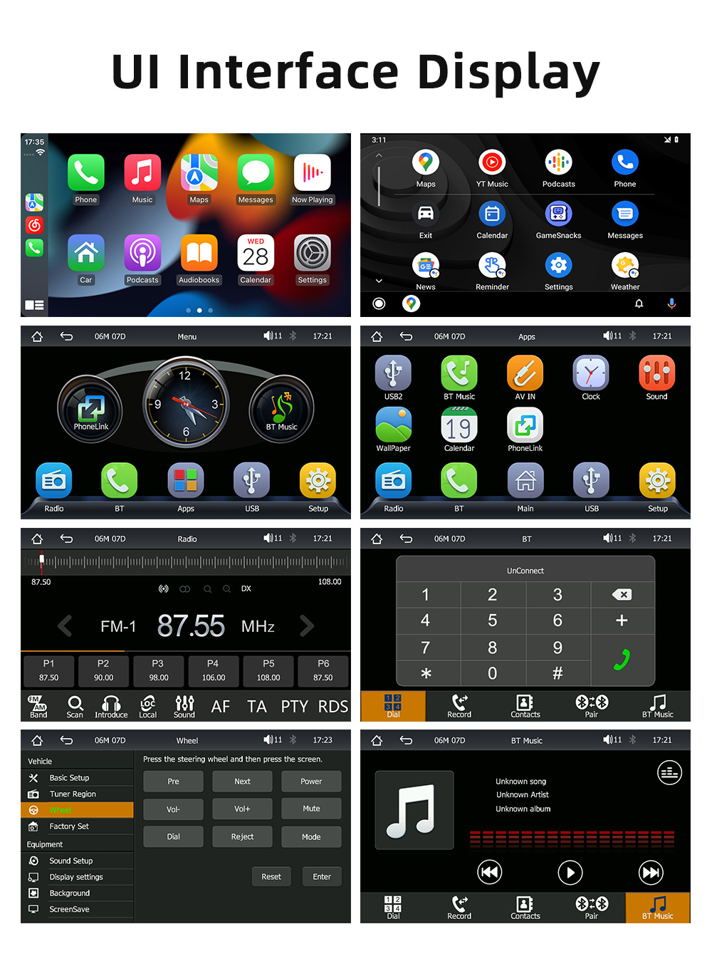 Function support: MP5/reverse/Bluetooth/mobile phone interconnection/wired carplay/wired Android auto