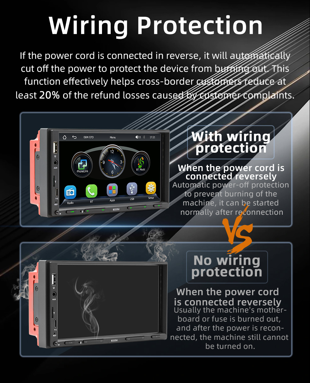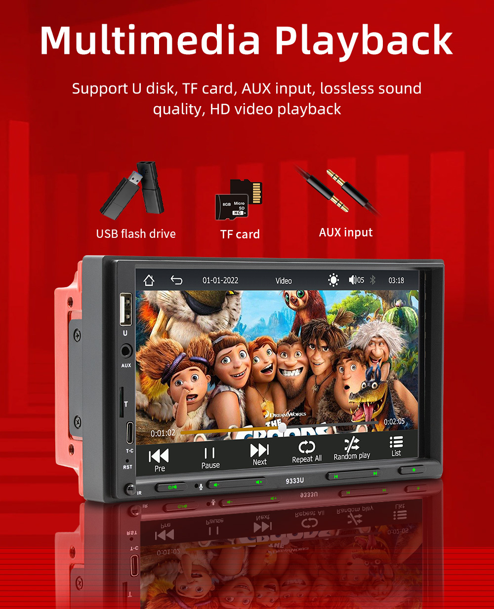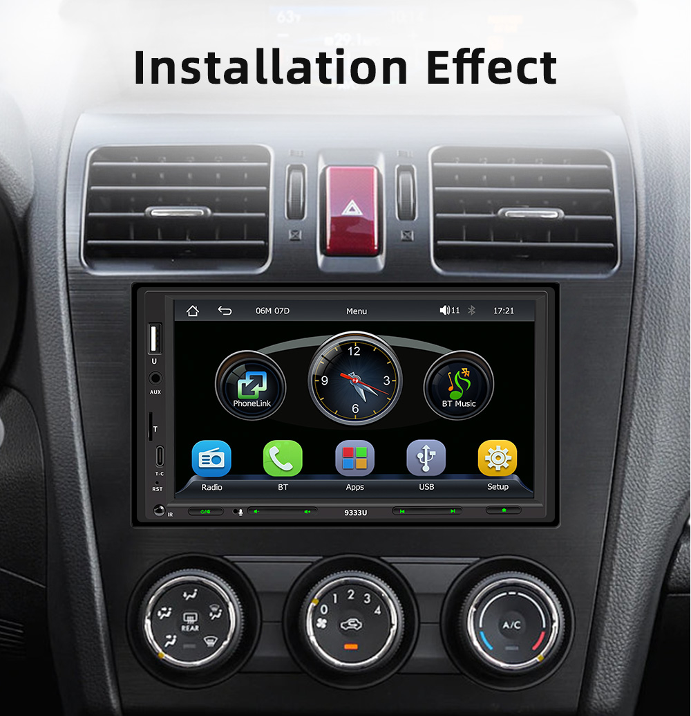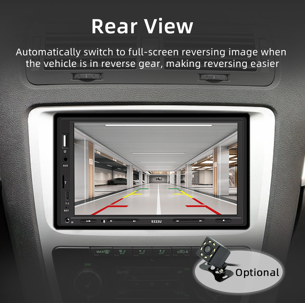 【Reversing Image Function】After connected with the rear camera, you can see the image on the radio screen through the rear view camera when reversing your car. The 7-inch touch screen will automatically display the reverse image once you pull in reverse. Make your daily reversing safer.