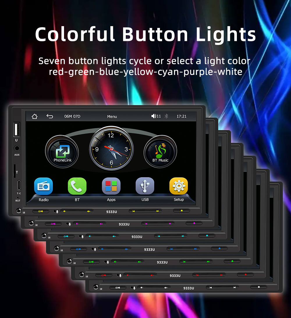 【Supports Seven Lighting Colors】Our product has seven color features that allow you to customize your experience with a range of dynamic visual effects. Switch between different colors and modes at the touch of a button to create a truly unique and engaging experience. So why settle for a simple and boring car radio when you can have one with seven colors? Try it today and see for yourself the difference!