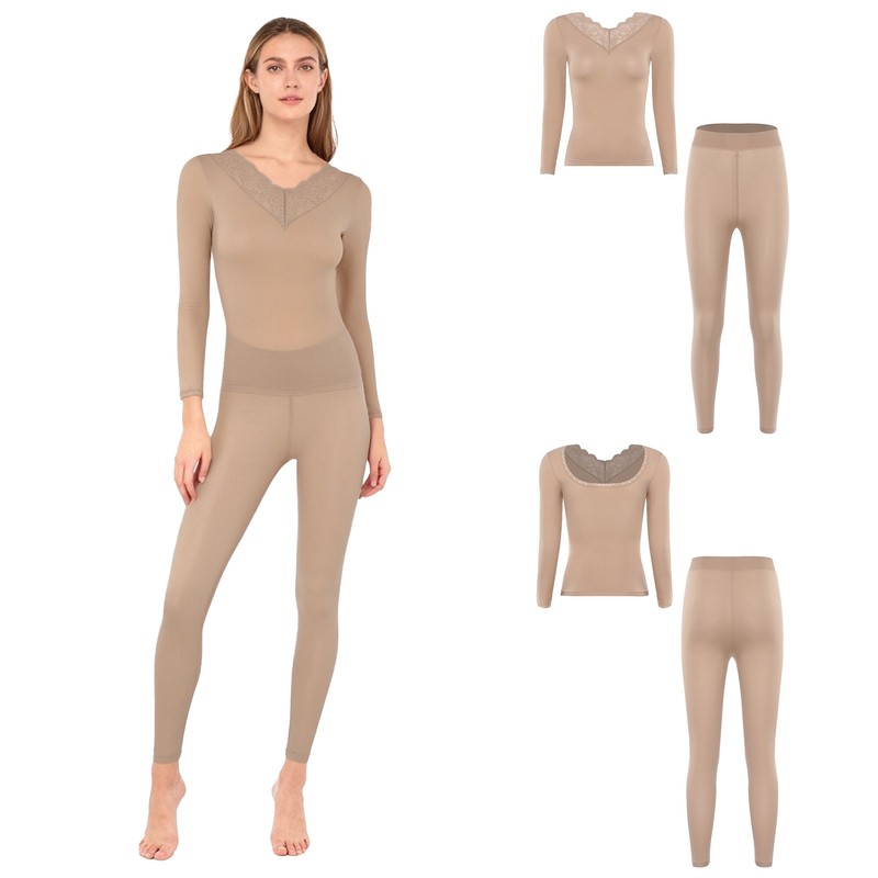 Womens Set Top Outfit CasuaL Homewear Long Sleeve Base Nightwear Layer Warm 2PC