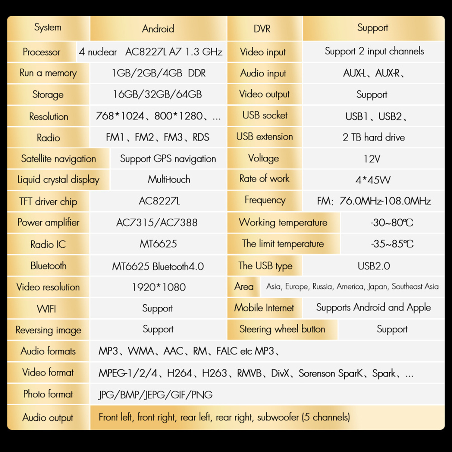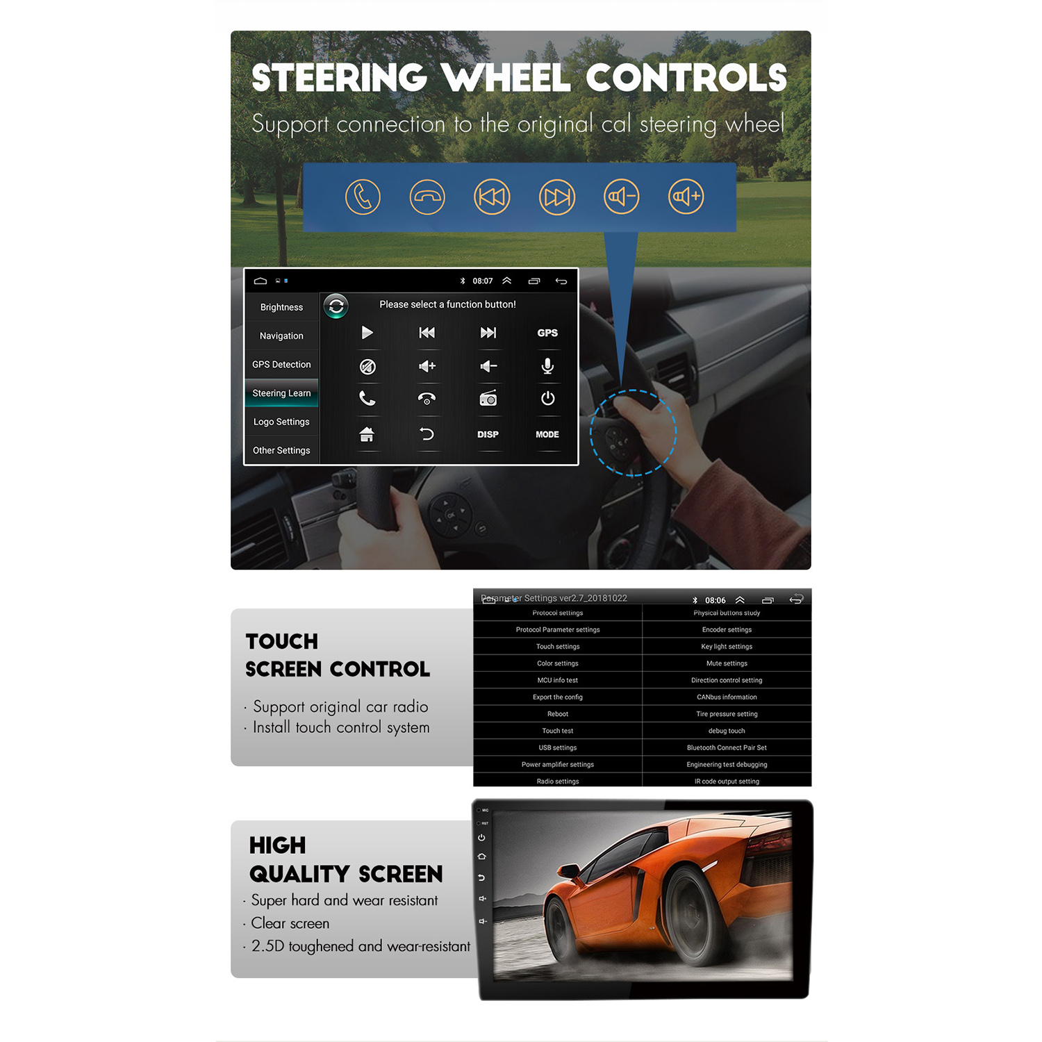 7. Radio Band: Support RDS & FM Radio, FM1/FM2/FM3 87.5-108 MHz, you can listen the radio which is your interested.