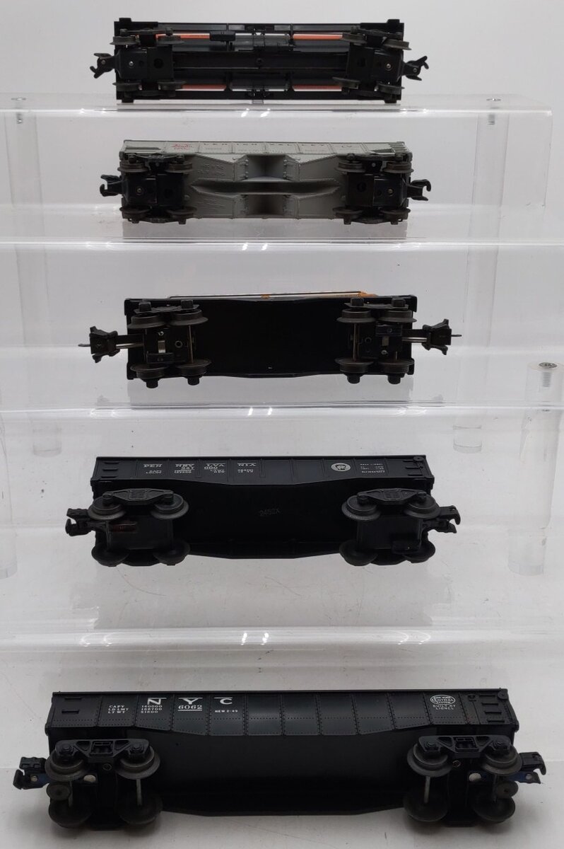This item has been graded per TCA standards C-6: Very Good. These cars show scratches and spots of paint loss throughout various sections of the shell and chassis. These cars show spots of rust on the chassis, trucks/wheels, and ladders/platforms. There's a small amount of red paint on the wheel set of one of the gondolas. Car #6062 comes with three spools. The overall appearance of each item may be improved with a gentle and thorough cleaning. The instruction manual is not included. The original box is not included. Please check the photos for a detailed look at each item. Overall condition is Very Good.