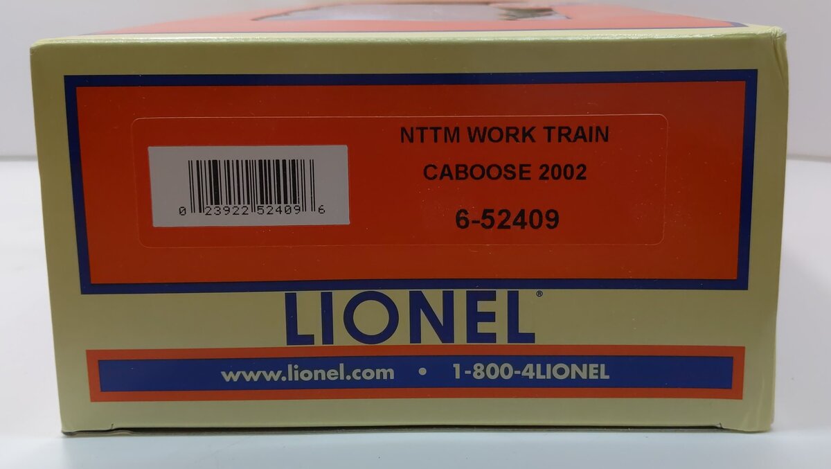 Here is a Lionel 6-52409 O Gauge National Toy Train Museum 2002 Work Train Work Caboose. Features include O-Gauge, Traditional O-Scale, Die-cast sprung trucks, Die-cast operating knuckle couplers, Lighted interior, Real wood deck, Detailed undercarriage, Separately applied metal steps and grab irons, Length: 12", and a Minimum curve: O-31.