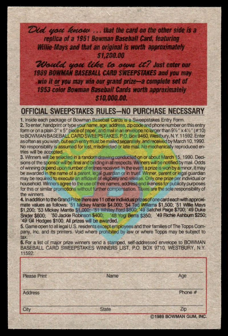 | 1990 Bowman Insert Willie Mays San Francisco Giants #1 |