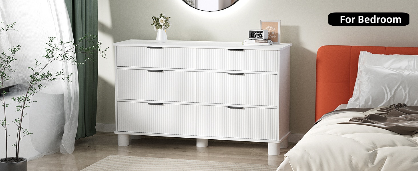 Spacious Drawers, Versatile Storage: Includes 6 deep drawers in 2 sizes for organizing clothes, linens, baby items, and daily essentials.