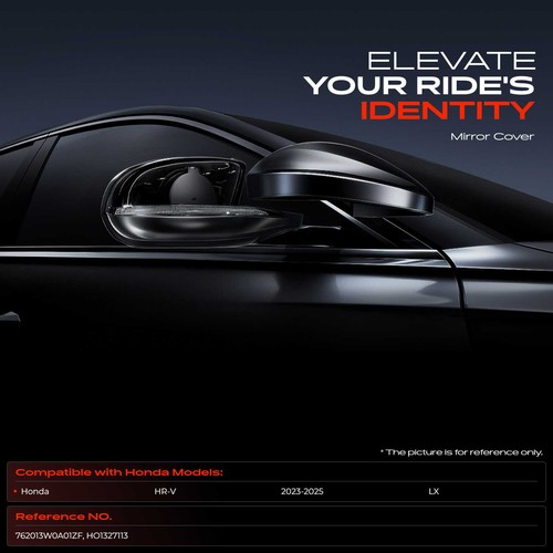 Mirror Cover Cap Smooth Black for Honda HR-V LX 2023-2025 Right Passenger Side