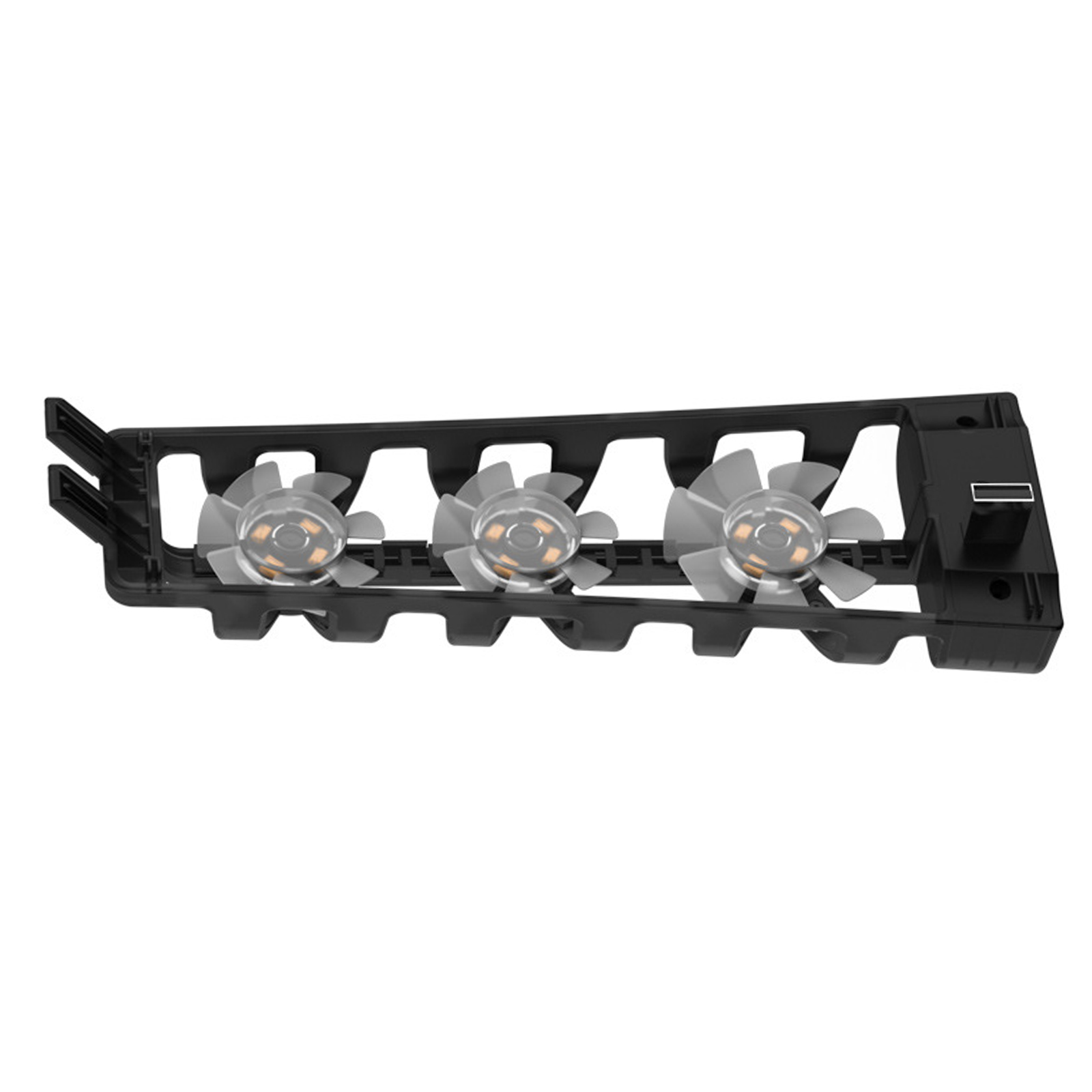The USB output port on the cooling fan can provide DC 5V power supply and transmit data.