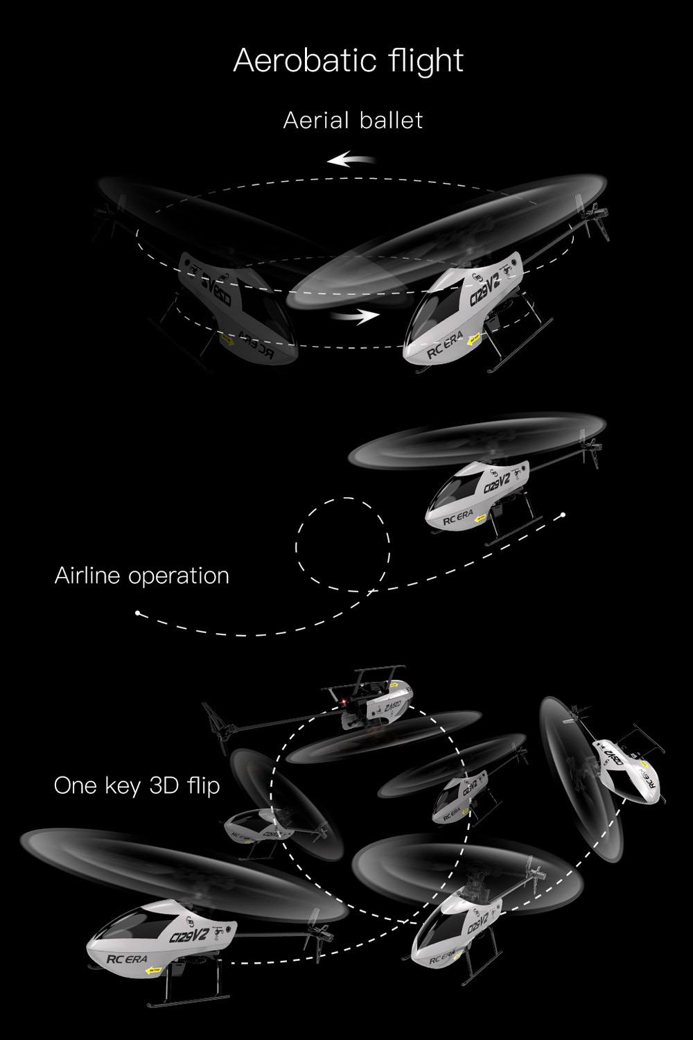 Adopting a single blade design without ailerons, a 6-axis electronic gyroscope for stability enhancement, and incorporating a pressure gauge for altitude control, the flight is more stable and easier to control! Pioneering 4-channel aileron free 360 ° roll mode, making flying more enjoyable, with a range of over 15 minutes!