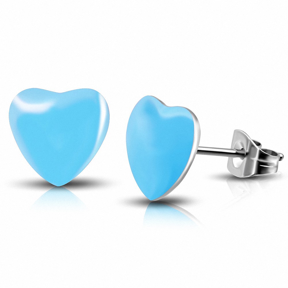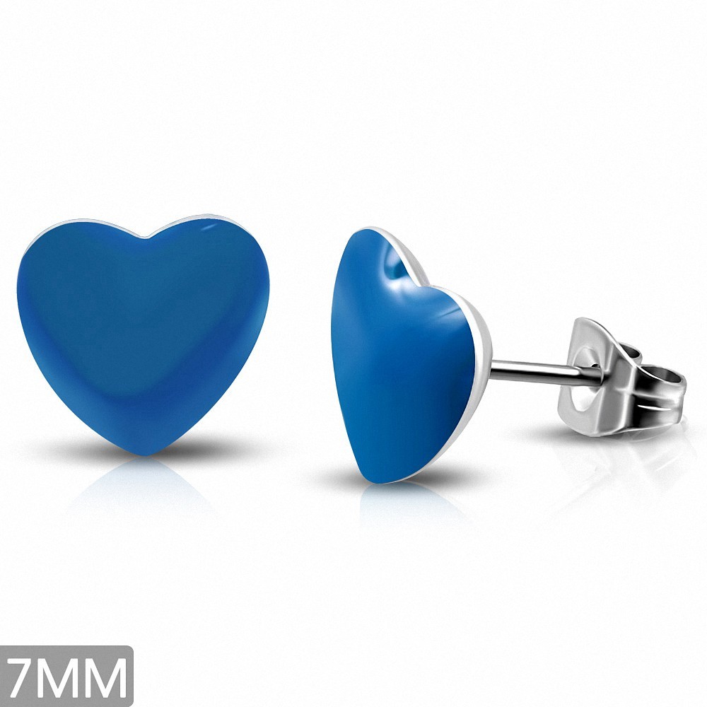 7 mm | Aretes con forma de corazón de amor azul en acero inoxidable de dos tonos (par)