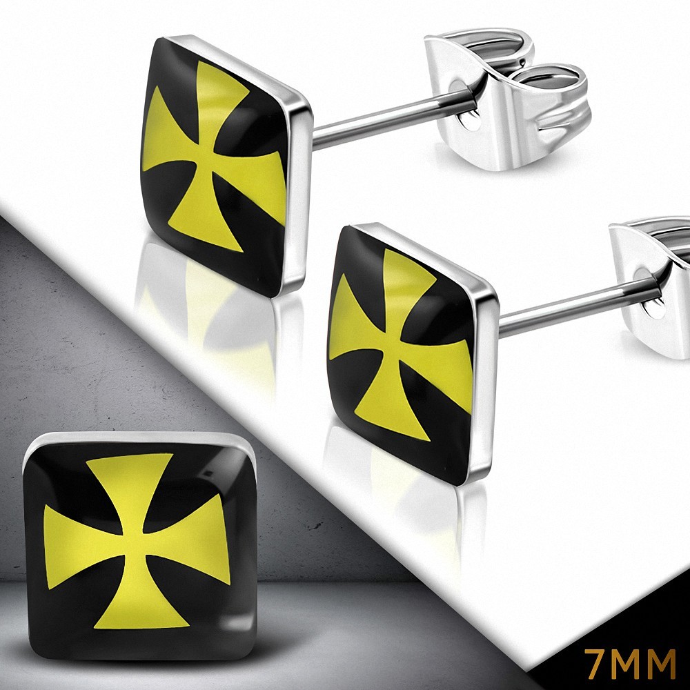 7 mm | Aretes con forma de corazón de amor azul en acero inoxidable de dos tonos (par) 7 mm | Aretes con forma de corazón de amor azul en acero inoxidable de dos tonos (par)