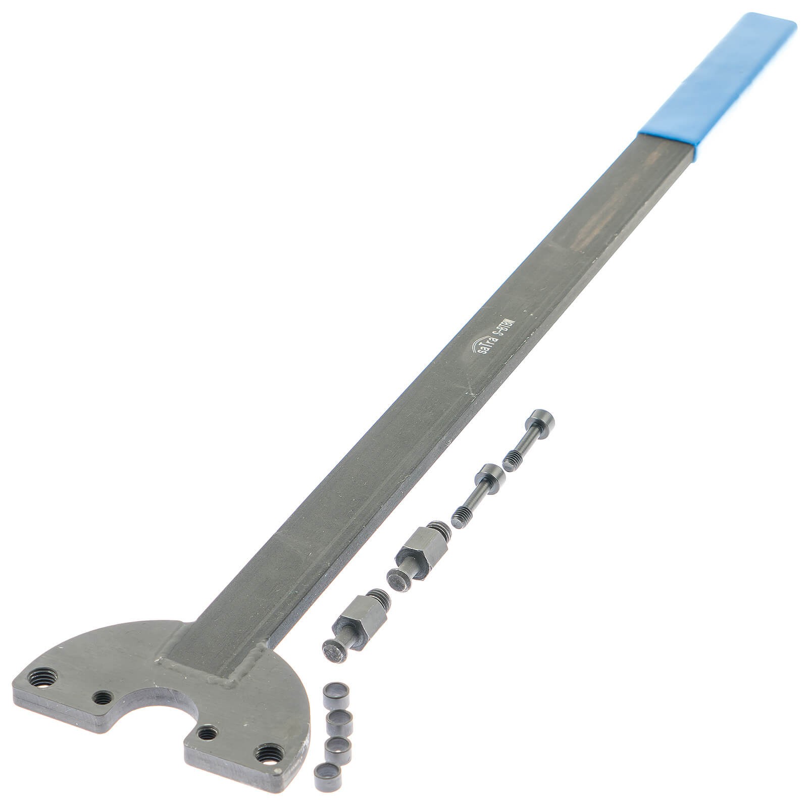 zum Gegenhalten der Kurbelwellen-Riemenscheiben, auch zum Gegenhalten des Kurbelwellen-Zahnriemenrads bei 2-Ventil-Motoren