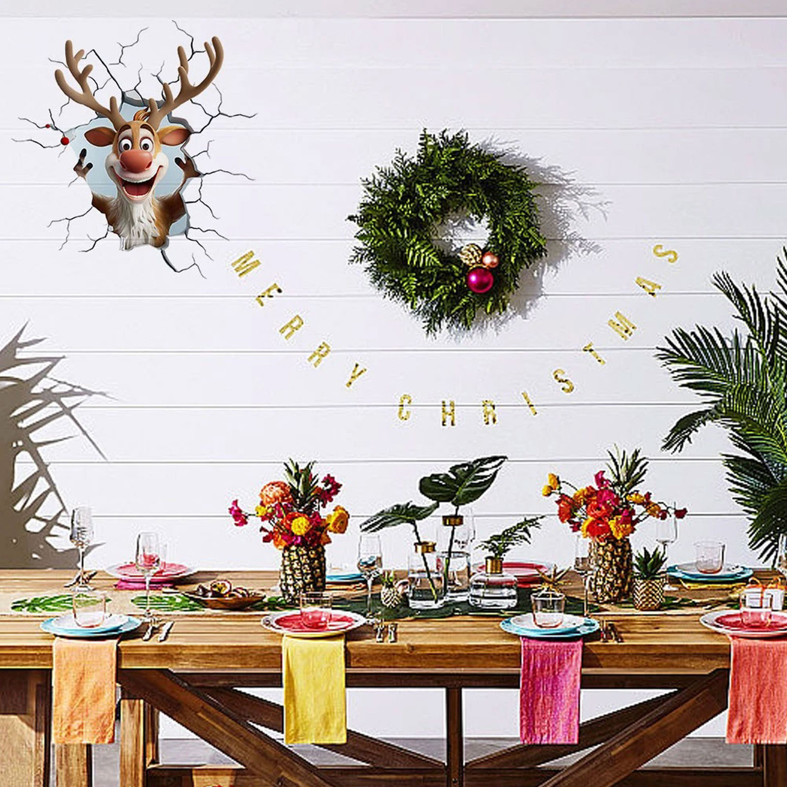 Stunning 3D effect: Carefully designed wall breaking design, as if Santa Claus and cute reindeer are peeking out from the other end of the wall, lifelike and full of fun!