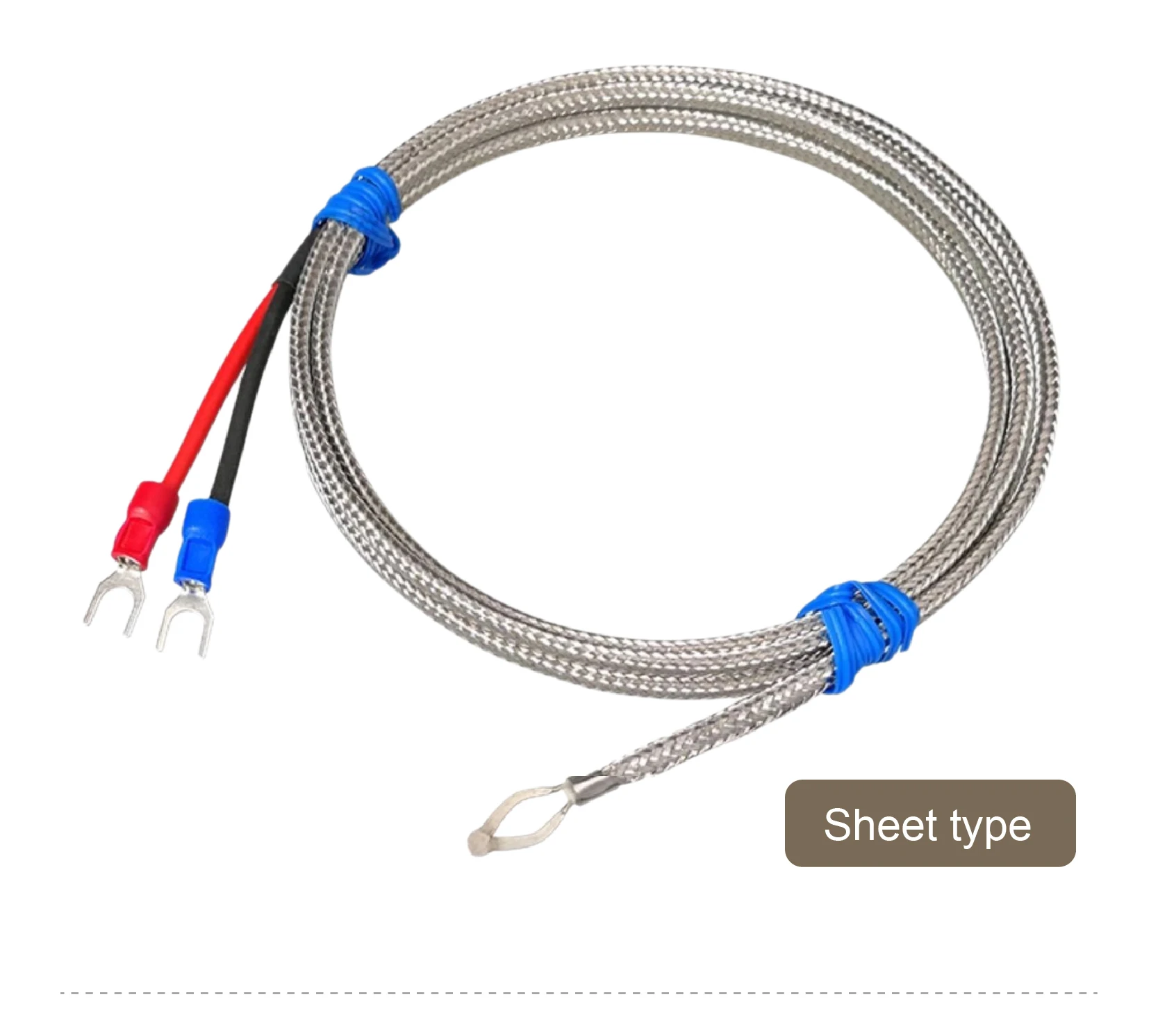 1.NOTE Default Parameters: Type:Screw-in Type Optional Parameters: Type:Thin Sheet Type,Welded Tip Type 2.Parameters Parameter Description Type K-type (default) Temperature Range 0~1000°C (default) Thread Size M6*1 (default), customizable Thread Length 10mm Screw Material Iron with electroplating Cable Material High-temperature quartz fiber Cable Length 1-5m (customizable) Thermocouple Wires 2*0.8mm precision measurement wires 3.Features High-Temperature Resistance Customizable Specifications Durable Quartz Fiber Cable Compatible with Controllers 4.Applications Industrial Heating Systems: Accurate temperature measurement in furnaces and kilns. Scientific Experiments: High-temperature monitoring for lab setups. Custom Machinery: Ideal for integration into specialized equipment requiring precise thermal data. What does the default product include? Can I customize the connector type? Is the cable length customizable?