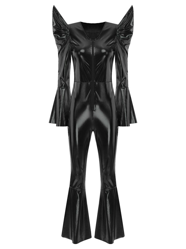 Made from a blend of polyester, PU, and spandex, the jumpsuit is stretchy and durable, ensuring a flexible and long-lasting wearing experience.