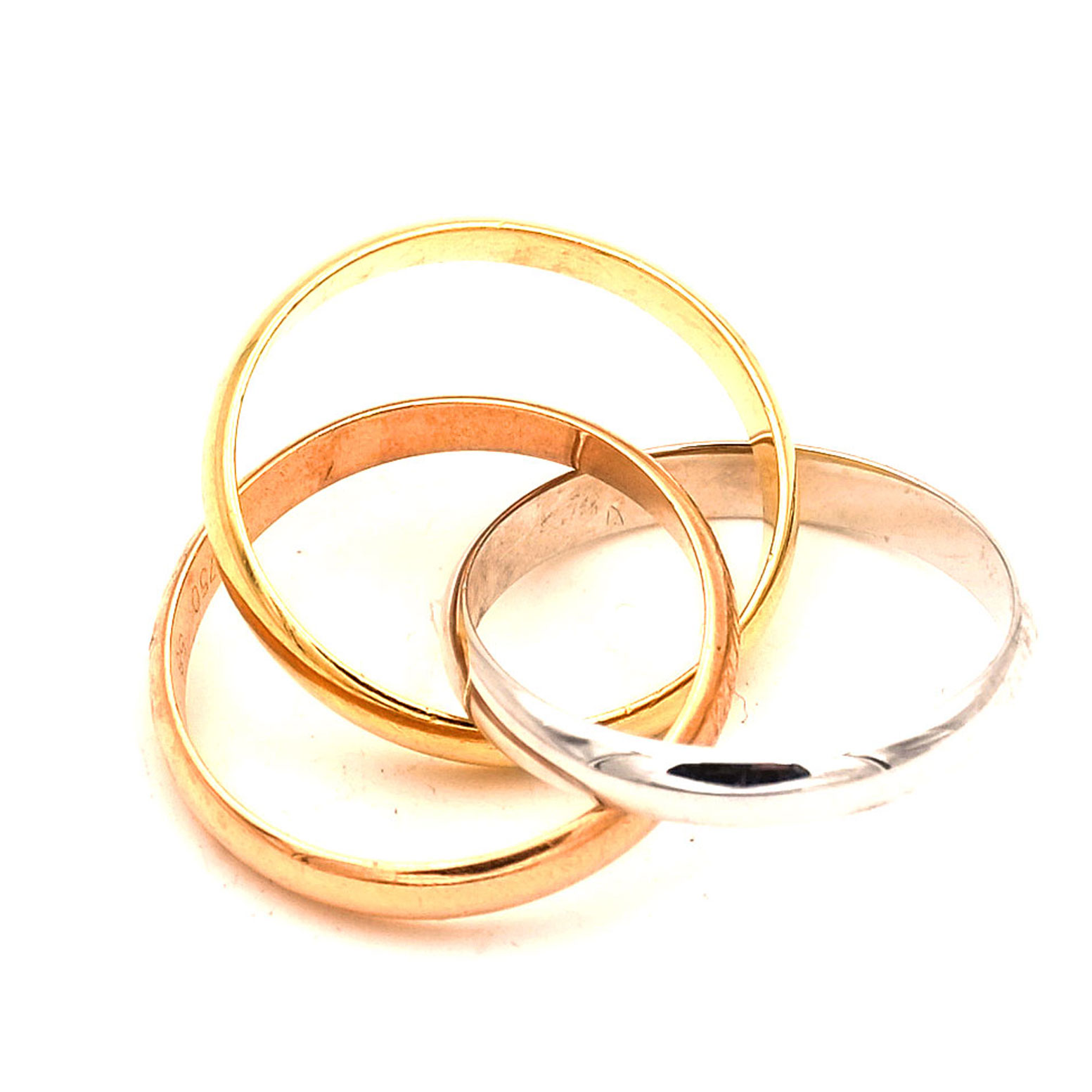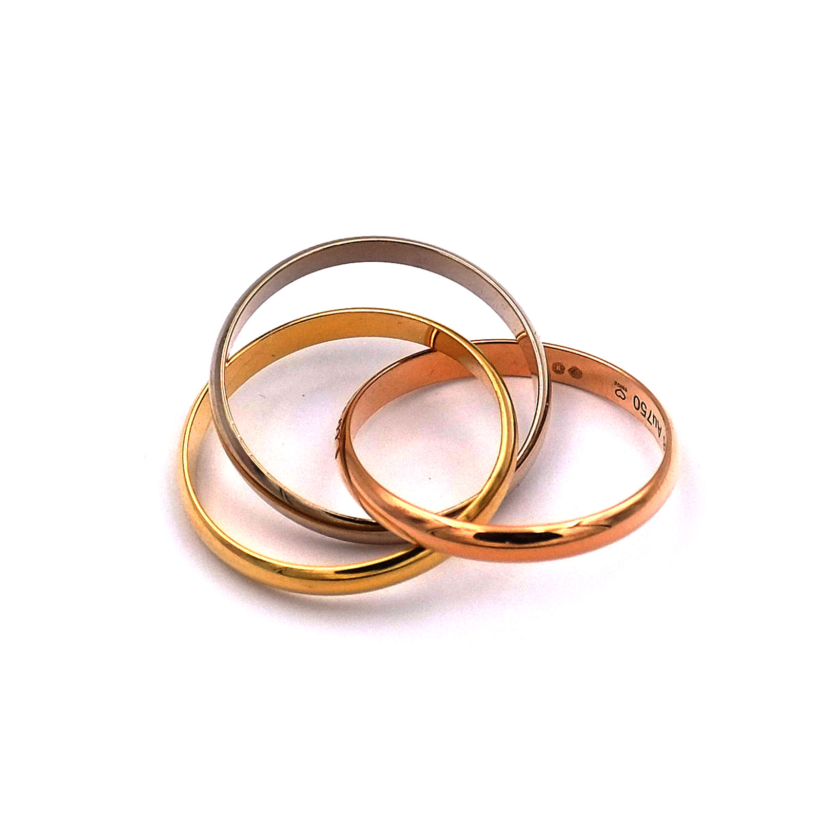 Authentischer Cartier Rollring in dreifarbigem 750er Gold mit original Cartier Punzierungen und Seriennummer. Lieferung mit Hauszertifikat und neutraler Box.