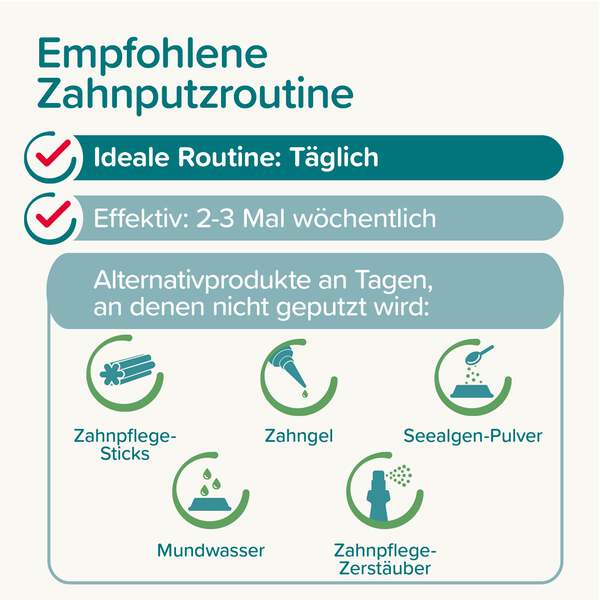 Sie wird idealerweise in Kombination mit einer Zahnbürste oder einem Zahnfingerling verwendet und ist für die tägliche Anwendung geeignet.