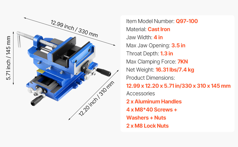 Built from high-strength cast iron, this cross slide drill press vise supports precise X/Y dual-axis adjustments. Its dual handles allow smooth horizontal and vertical movement. Ideal for milling machines, drill presses, and more.
