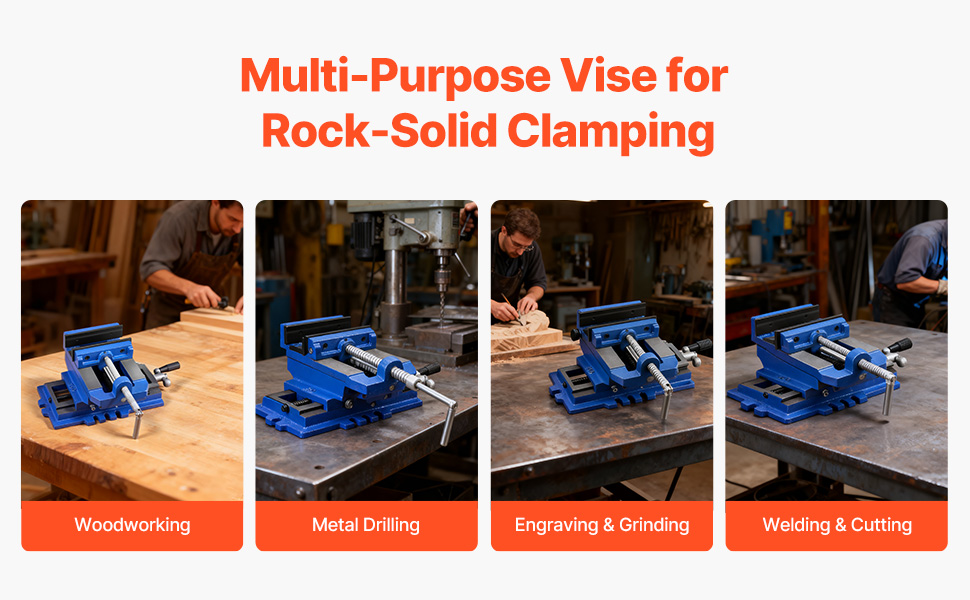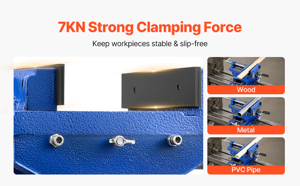 Non-Slip & Stable: Designed with anti-slip textured jaws, this cross slide vise delivers up to 7KN of clamping force to hold workpieces securely. It effectively resists slipping, ensuring steady work for drilling, engraving, grinding, and more