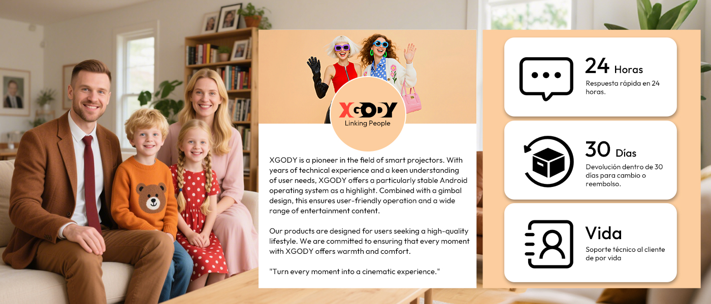 ăKeystone correction and image scalingăThe XGODY movie projector allows you to easily adjust the vertical and horizontal image. You can adjust the projected image from 100% to 75% without having to move the projector. No matter how you position it, the mini projector's image is always clear.