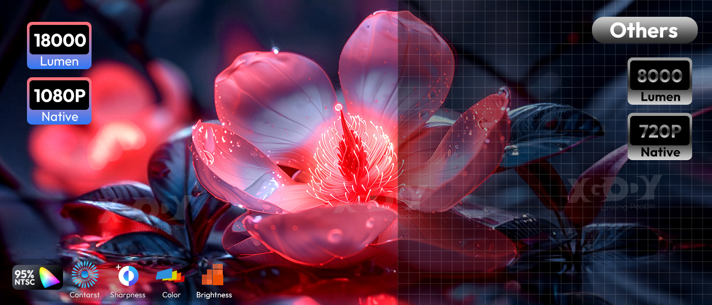 The Gimbal A6 home projector is a true 1080P Full HD projector with an original resolution of 1920 x 1080 and supports 4K. It offers 18,000 lumens and a high contrast ratio of 15000:1. Thanks to HDR10 high dynamic range video decoding, image details are more vivid. 4K videos can be played directly, ensuring richly detailed presentations. Whether indoors or outdoors, a first-class HD projection experience is guaranteed.