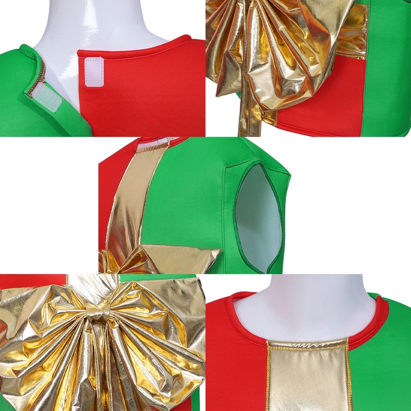 The unique designs of candy cane or gift box add a touch of holiday cheer and make the kids stand out in the crowd, following the trendy cosplay fashion.