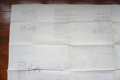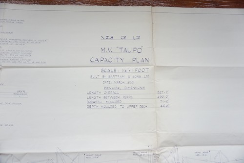 1966 M.V. Taupo Capacity Deck Shipping Plan New Zealand Shipping Signed