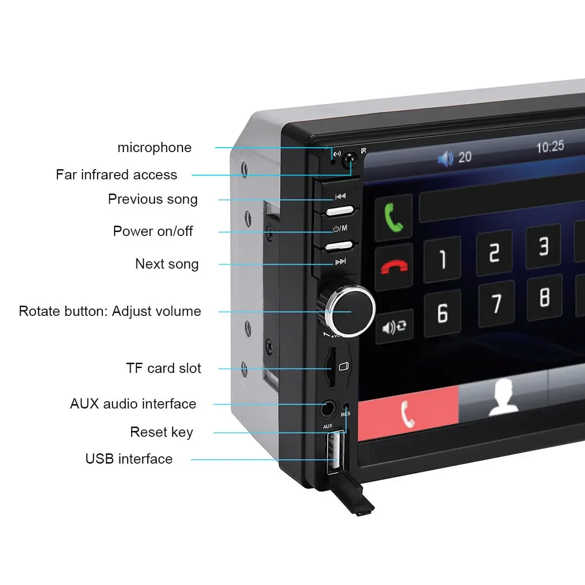 【2 Din Touch Screen Car Stereo Car Radio MP5 Player】1080P Full HD high resolution 7" touch screen car stereo, offer you a fantastic experience to watch HD video. Size:178*103*63mm/7.01*4.06*2.48inch,please check the size of your car's radio before ordering.