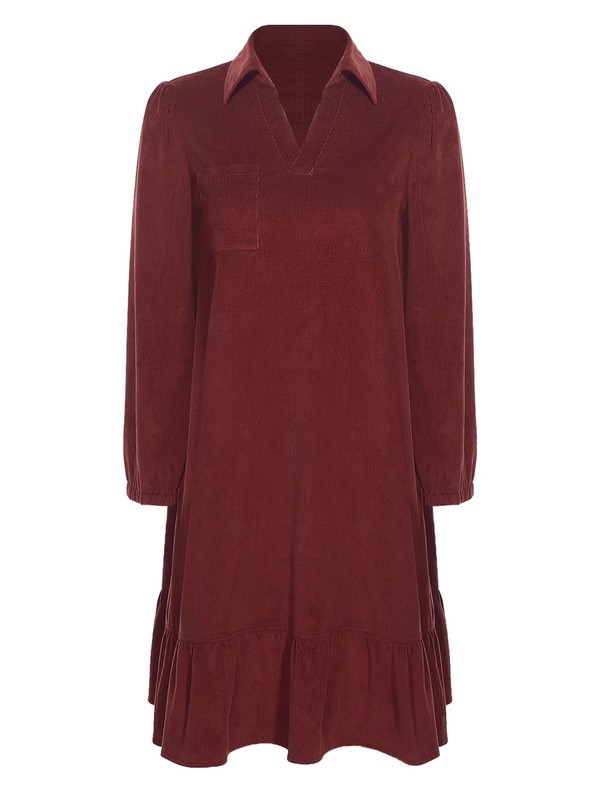 The corduroy fabric gives the dress a trendy and textured look, adding a touch of sophistication to your outfit.
