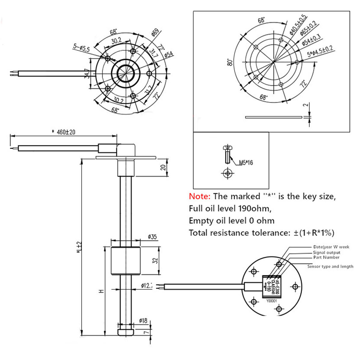 0~190 ohm Sensor passend für 0~190 ohm Kraftstoffanzeige.