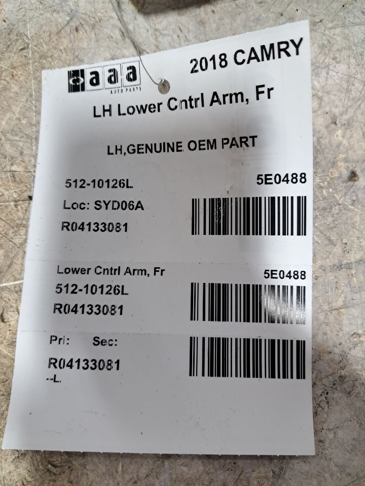 Lh Driver Side 2018 Camry Front Lower Control Arm Sku#4133081
