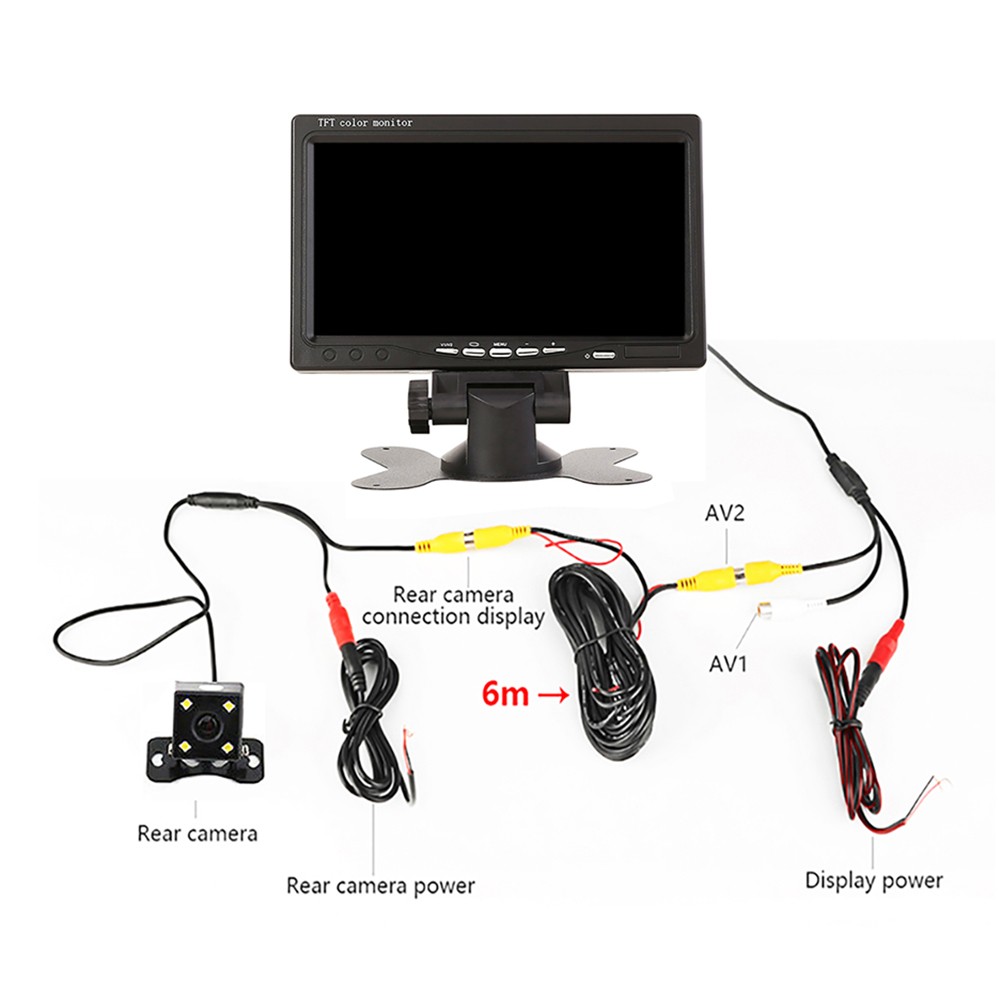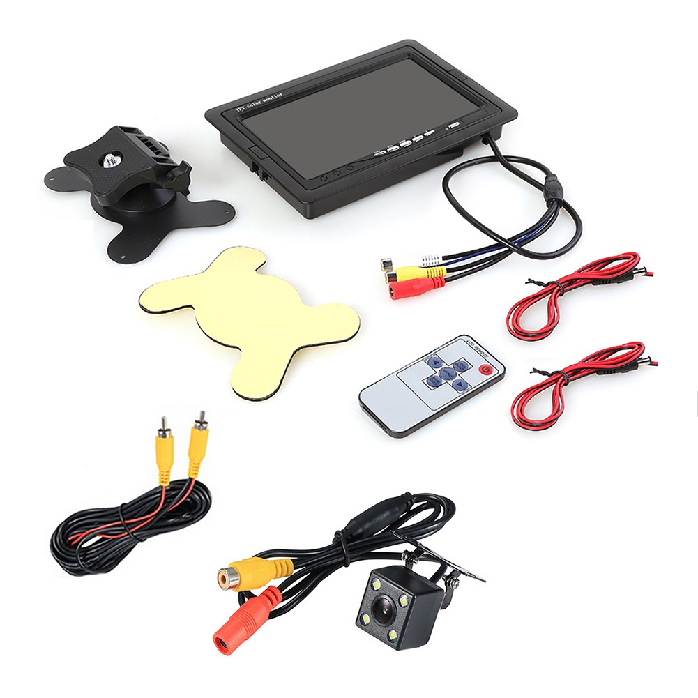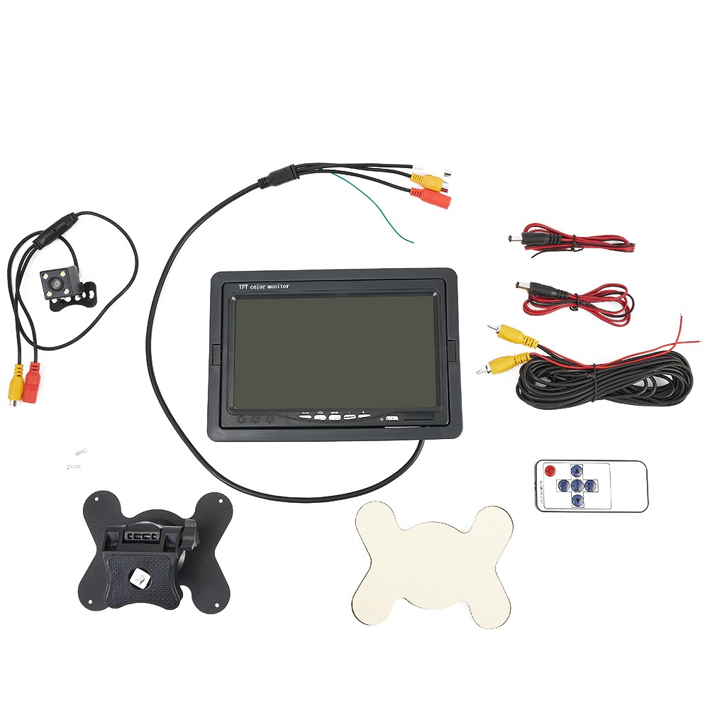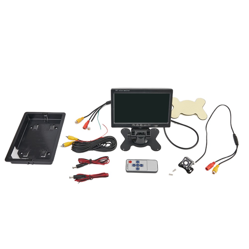 Spécifications: *Hôte: * Neuf, de haute qualité *Fonction: caméra de recul de voiture LCD couleur TFT 7 pouces *Affichage: LCD couleur TFT *Taille de l'écran: 7 pouces *Résolution: 800X600 *Rapport de contraste: 350:1 *Vidéo: pour PAL / NTSC *Entrée vidéo: Entrée vidéo bidirectionnelle *Alimentation: DC 12V / 24V *Matériau de la coque: ABS *Température de fonctionnement: 0 à 80 degrés Celsius *Appareil photo arrière LED *115W *4 * pour night lumières de vision; *Angle de vision de l'appareil photo: 150 °; *puce d'image: 1/3 pouce couleur CMOS PC1030; *TV: NTSC/ pour PAL; *pixels: 628 *582 pixels; *Alimentation: DC 12V; *Température de fonctionnement: -40 °C ~ + 80 °C; *Sortie vidéo: pour RCA connecteur, 1.0VP-P, 75Ohm Liste complète des machines: moniteur de voiture 1 * 7 pouces 1 * support 1 * cordon d'alimentation 1 * télécommande (sans batterie) 1 * manuel d'utilisation 1 * caméra de recul Note: 1. La couleur réelle de l'article peut être légèrement différente des photos présentées sur le site Web en raison de nombreux facteurs tels la luminosité de votre moniteur et la luminosité de la lumière.