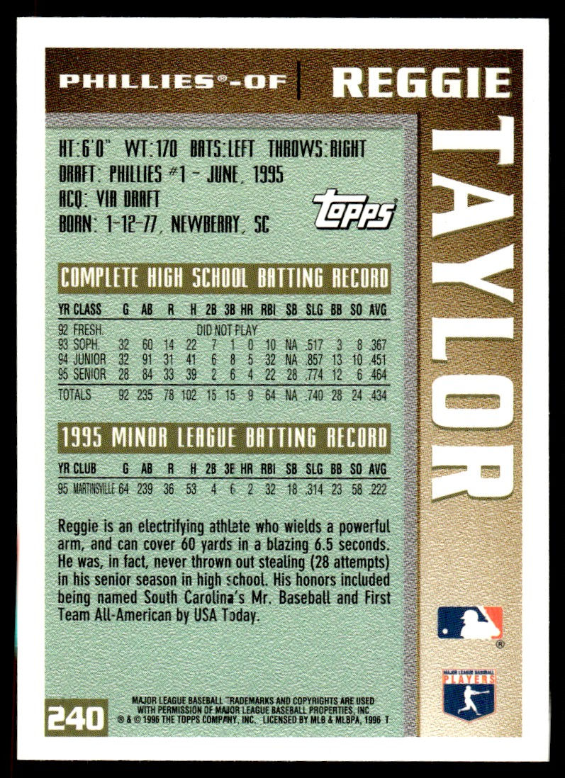 | 1996 Topps Reggie Taylor Clearwater Phillies #240 |