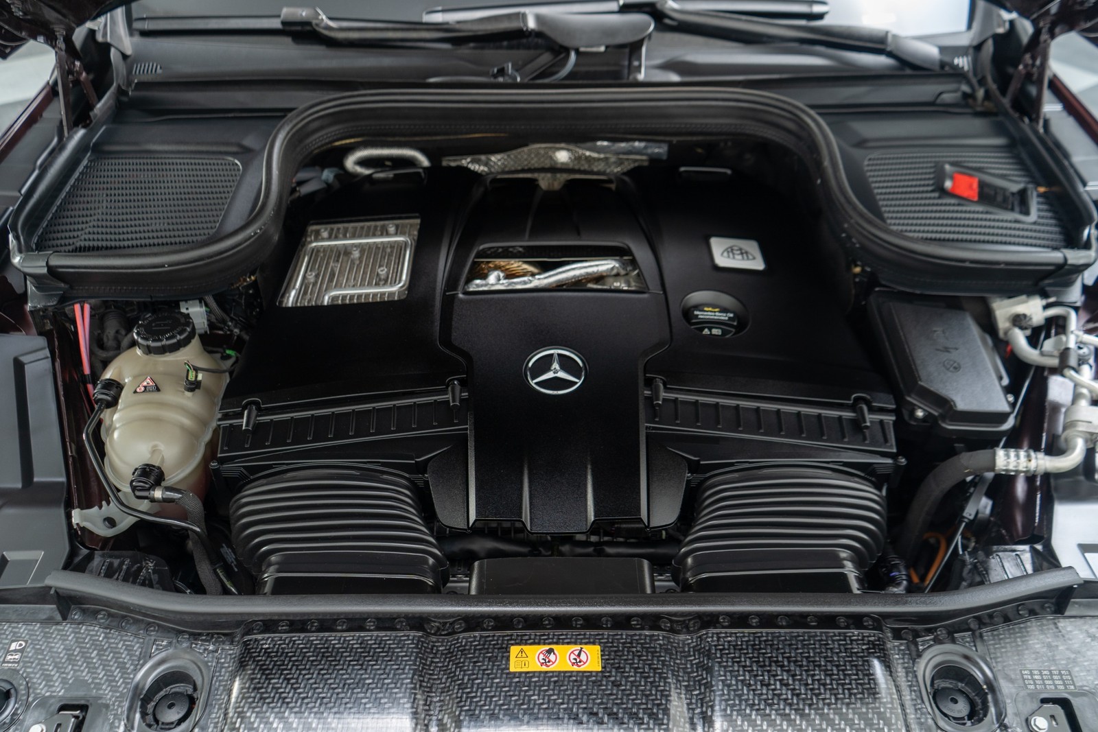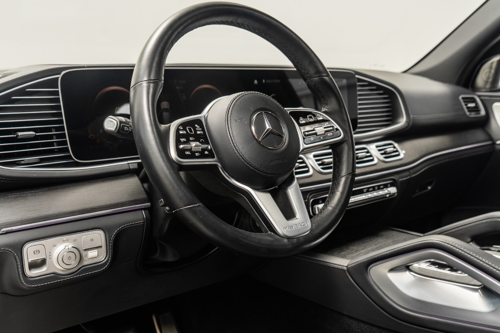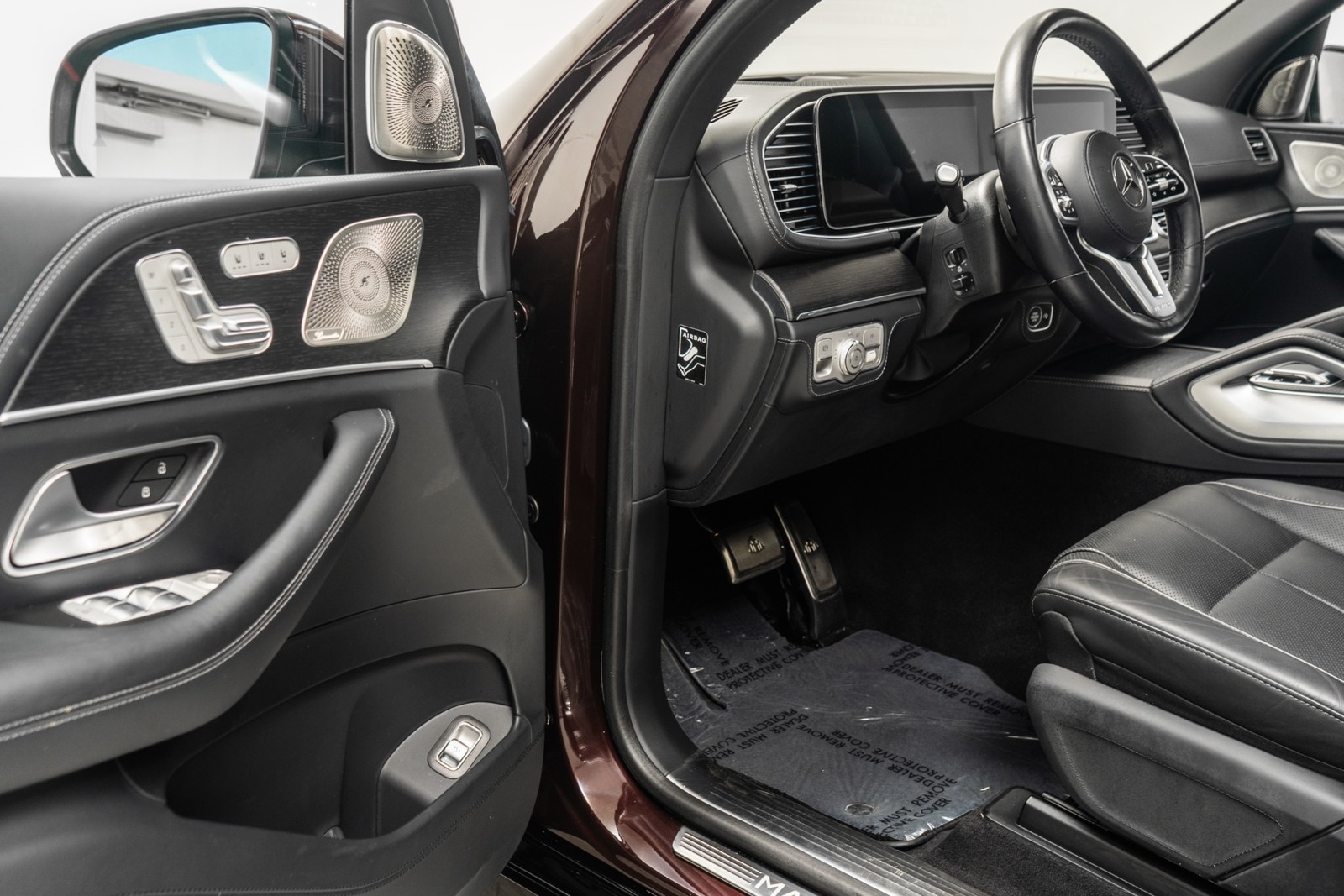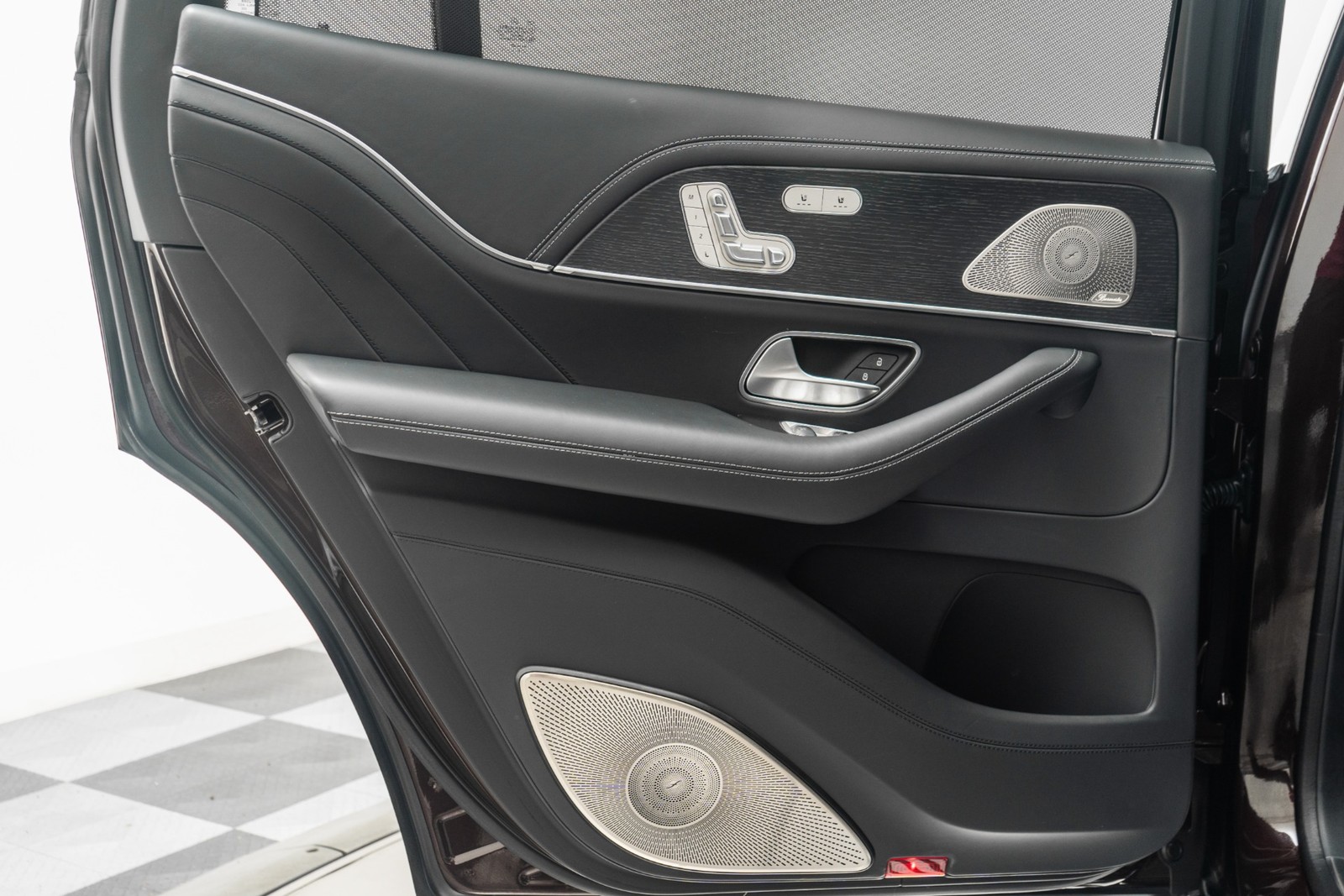 2023 Mercedes-Benz Maybach GLS 600 in Obsidian Black and Rubelite Red Metallic over Black leather interior with only 19,771 miles. This Maybach GLS 600 is loaded with: 4.0L Biturbo V8 with 550hp, 9 speed automatic transmission, diamond turned 22 inch Maybach multi spoke forged wheels with black inlays, power deployable running boards, reclining rear outboard seats, panoramic roof, natural grain black-flamed ash wood interior trim, heated and ventilated front and rear seats, Burmester audio, Distronic cruise control, lane departure warning, blind spot detection, floor mats and much more.