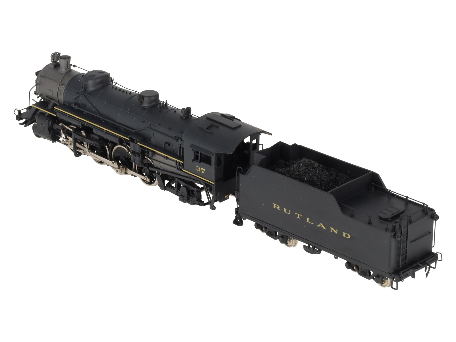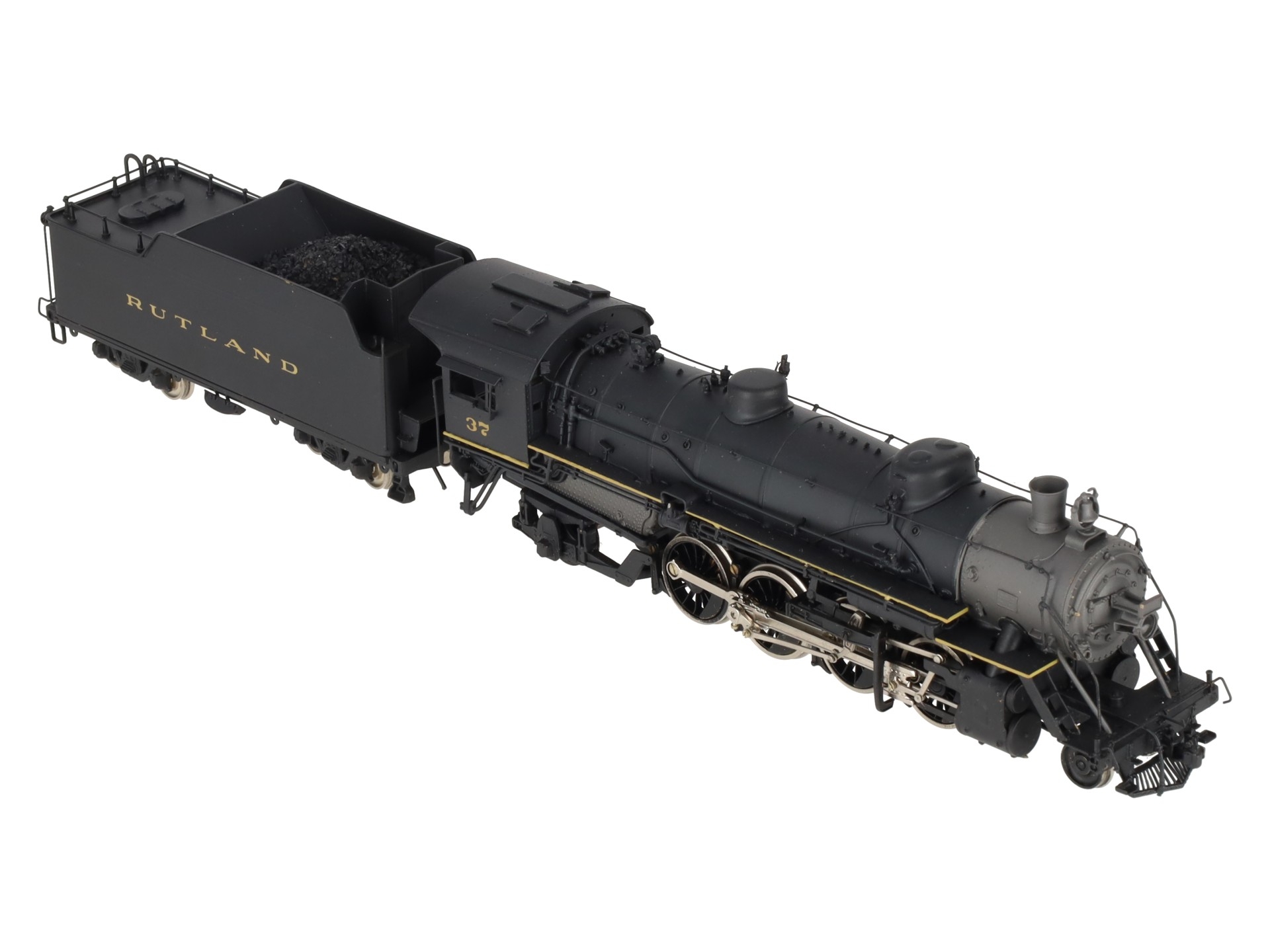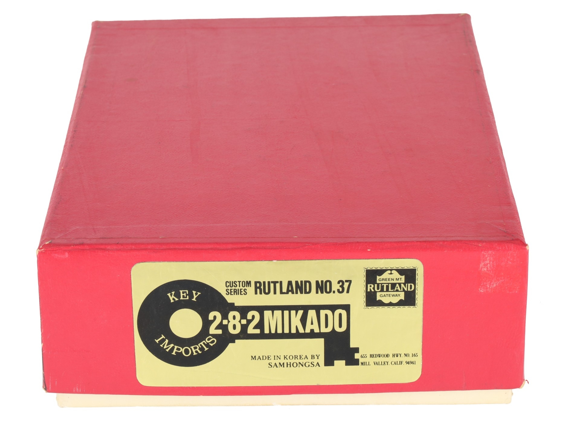 Here is a Key Imports HO Scale BRASS 2-8-2 Rutland Mikado Steam Loco. & Tender. Features include brass construction, brass trucks, knuckle couplers, metal wheels & axles and a motor.