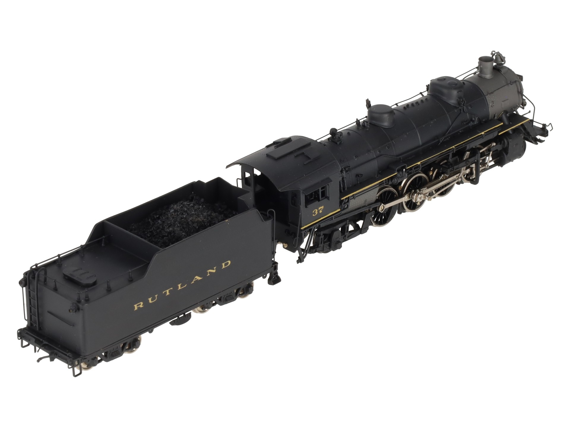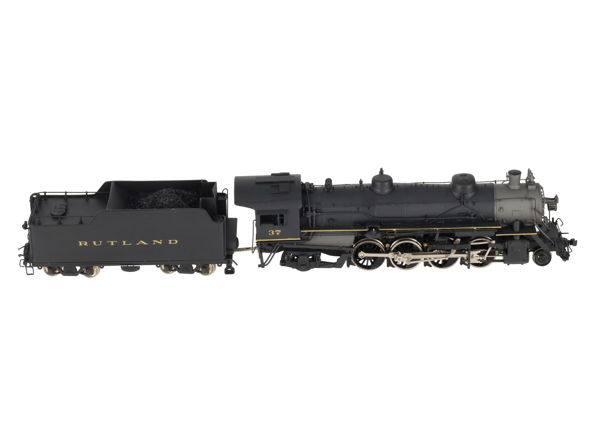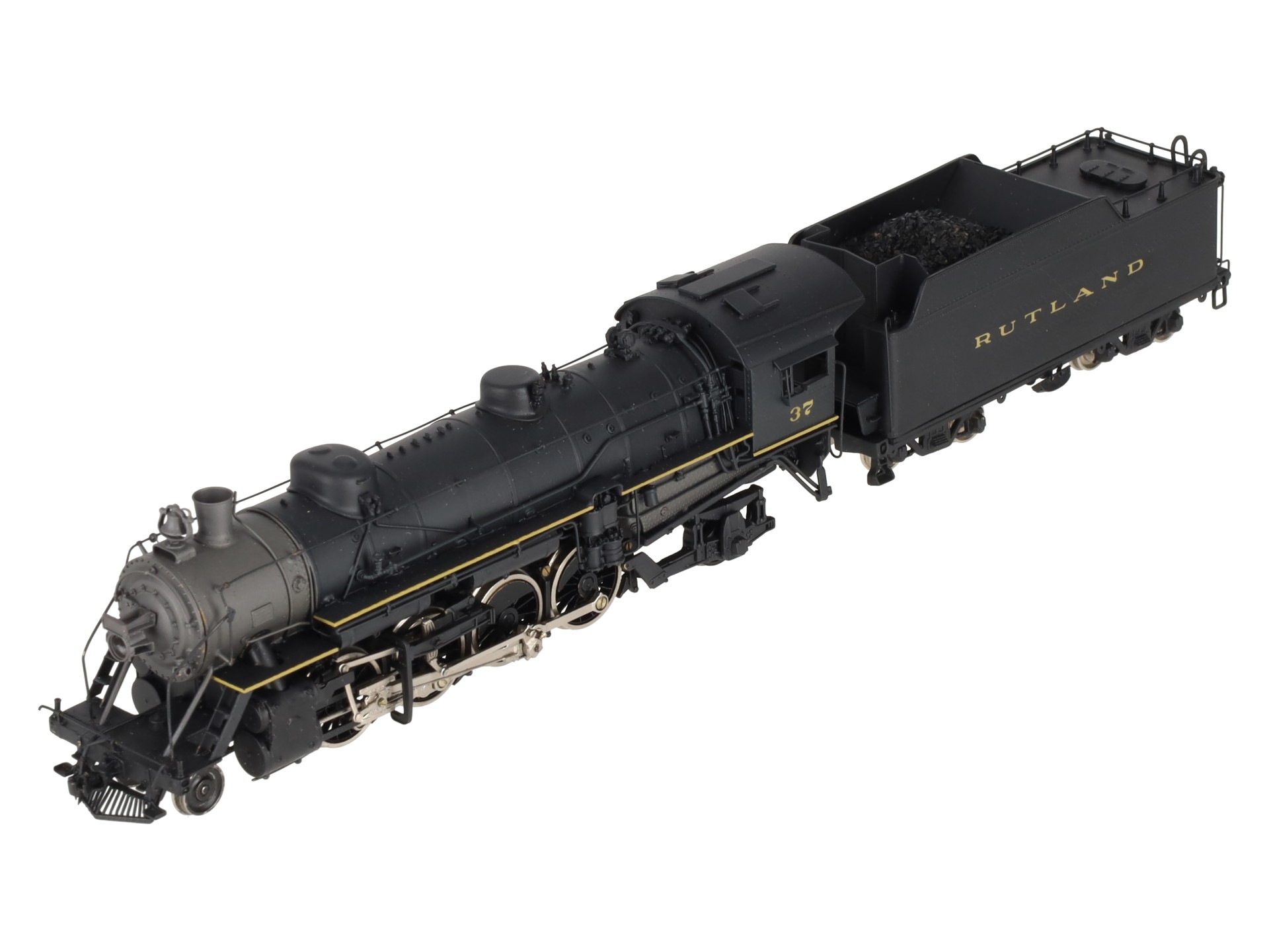 Here is a Key Imports HO Scale BRASS 2-8-2 Rutland Mikado Steam Loco. & Tender. Features include brass construction, brass trucks, knuckle couplers, metal wheels & axles and a motor.