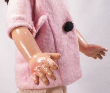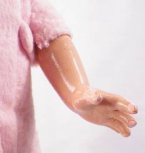 - Light crazing & peeling in the paint on her hands & back right elbow. It is just peeling - not touched up
