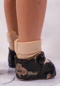 - Hair needs combing. Some paper stuck to her black shoes. I have not tried to remove it