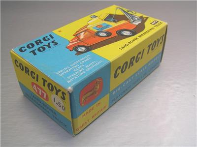 This is a Corgi toy made in Great Britain in 1960s. This example comes with plastic canopy and plastic threaded tires.