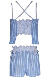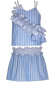 NEW Girls "BLUE & WHITE STRIPE RUFFLE" Top Shorts Outfit 2T