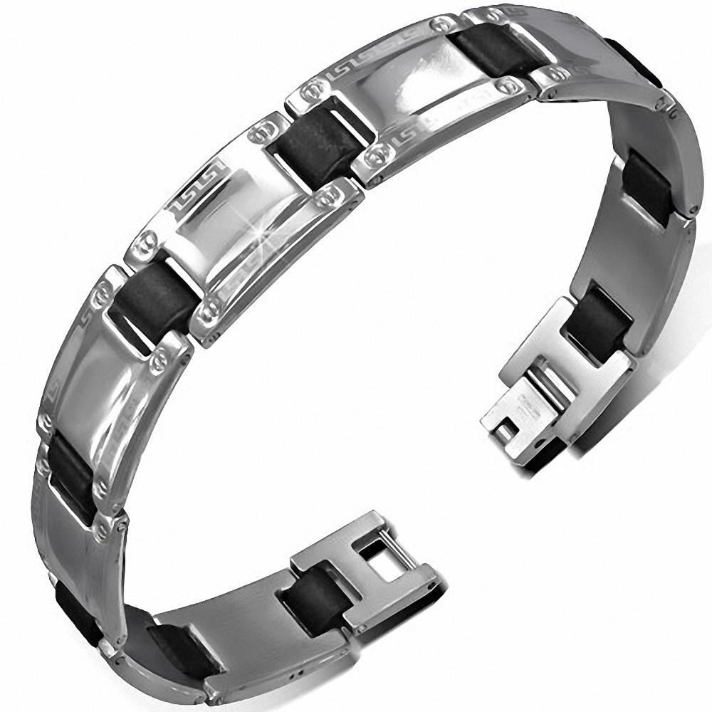 Silver steel men's bracelet with black links Silver steel men's bracelet with black links