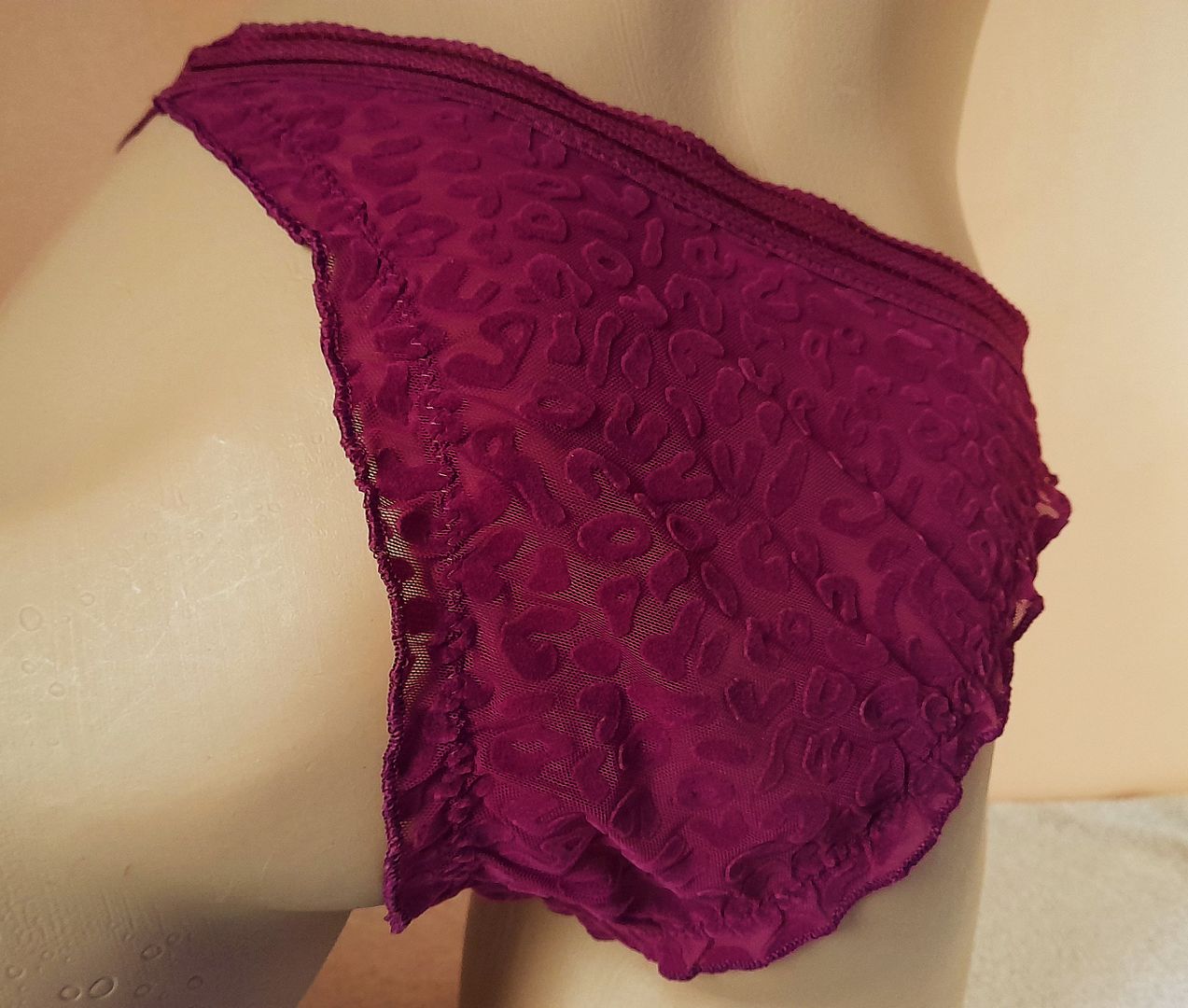Pretty Maroon Colour Nylon Sheer Frilly Knickers - Tanga Panties